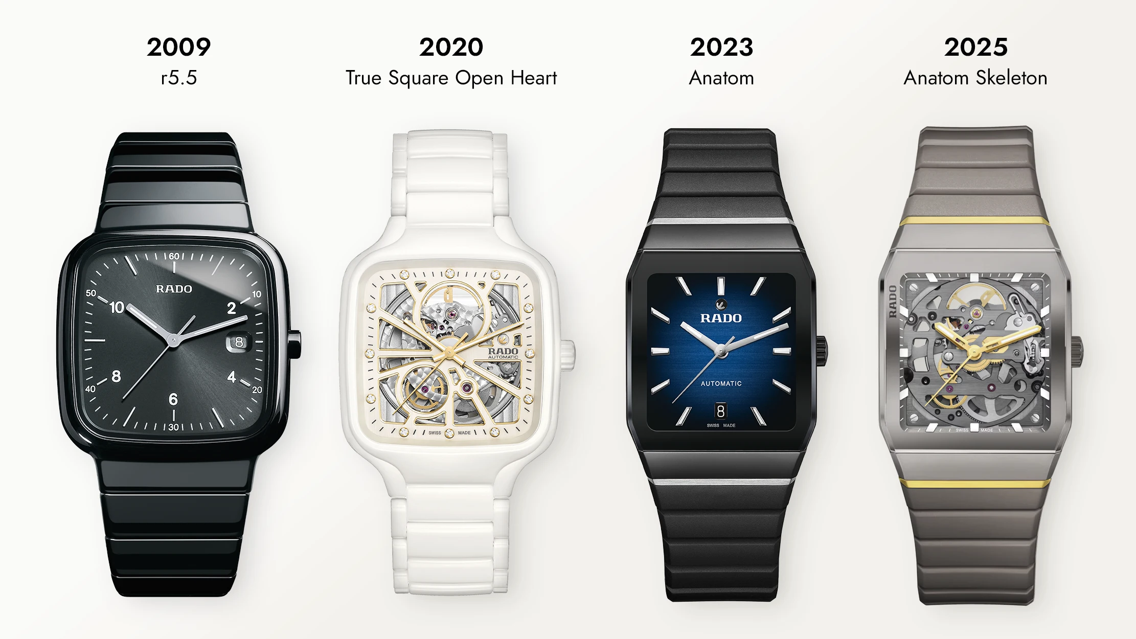 2023 setzte Rado mit Modellen wie der Captain Cook High-Tech Ceramic Skeleton, der DiaStar Original Skeleton und der True Square Skeleton ganz besonders auf Uhren mit Durch- und Einblick und prägte den Begriff Art of Skeletonisation.