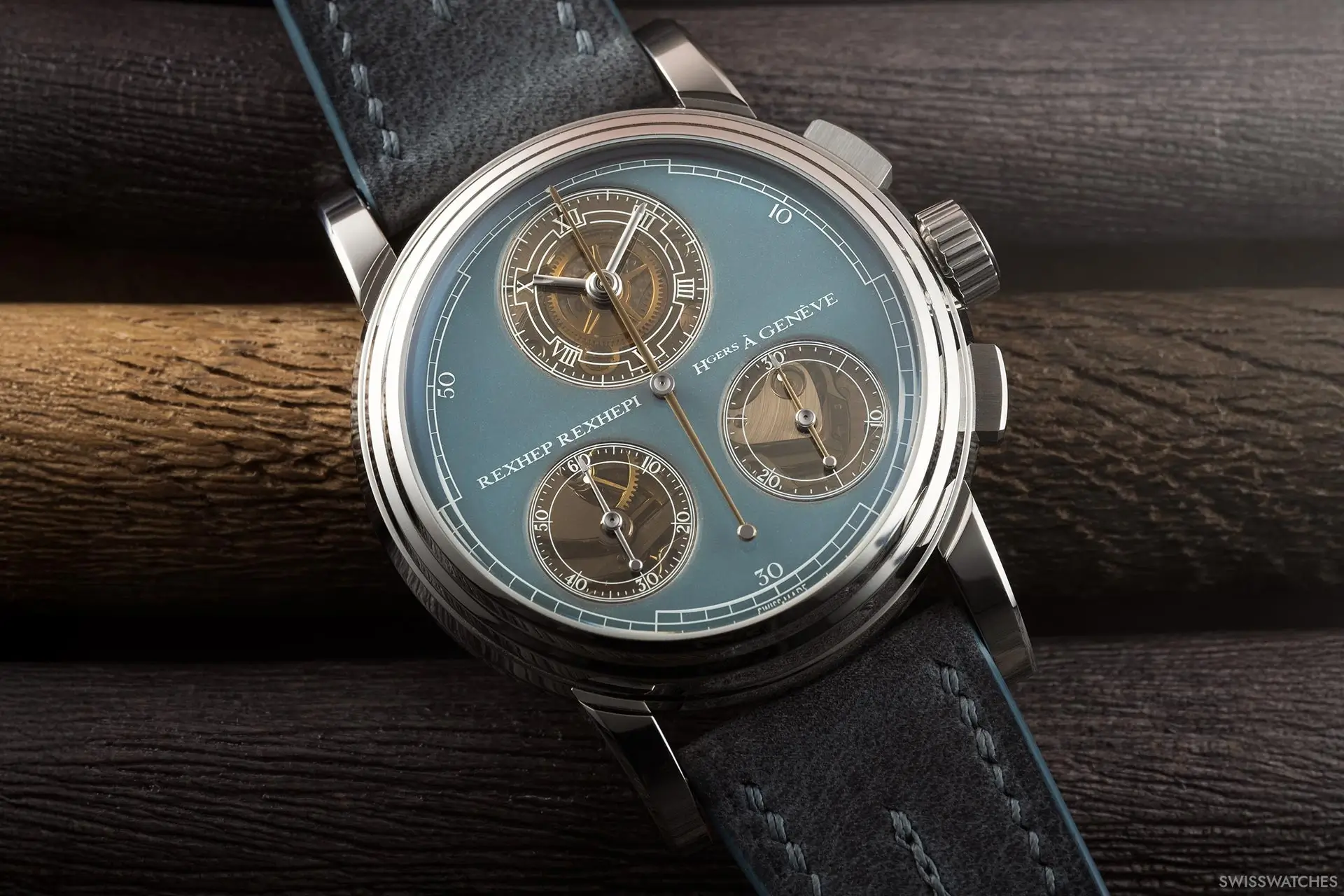 Das erklärt auch, warum Rexhep die Uhr weniger als Fortsetzung früherer Chronographenarbeiten versteht denn als einen Neuanfang. Ja, er hatte zuvor bereits Chronographen gebaut. Doch diesmal beginnt alles bei null. Das Werk ist vollständig neu, vollständig sein eigenes und unter seinem Namen mit neuer Architektur und neuer Balance entstanden. Für ein kleines unabhängiges Atelier ist das ein deutliches Statement.