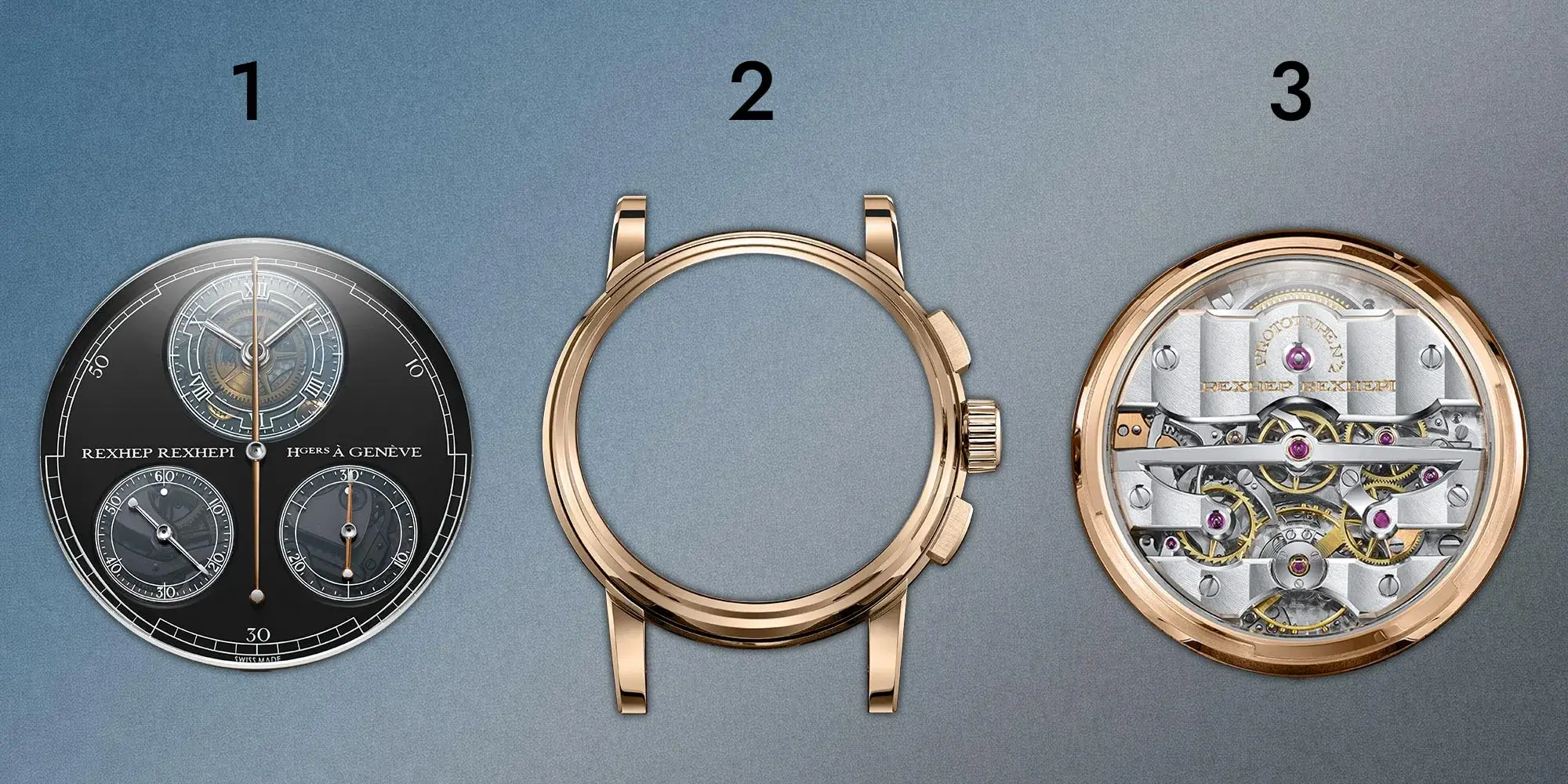 Eine der aufschlussreichsten Erkenntnisse unseres Gesprächs betraf Rexheps Gestaltungsprozess. Statt beim Werk zu beginnen und von dort aus nach außen zu arbeiten, beginnt er mit dem Zifferblatt, entwirft dann das Gehäuse und entwickelt erst danach das Kaliber. Für einen traditionellen Uhrmacher klingt das beinahe verkehrt herum. Für Rexhep ist die Logik dahinter jedoch klar. Das Erste, was man sieht, ist die Uhr – nicht das Werk. Das Erste, was man berührt, ist das Gehäuse – nicht die Brückenarchitektur. Wenn eine Uhr als Objekt stimmig wirken soll – in ihrer Größe, in der Position von Krone und Drückern, im Rhythmus ihrer Hilfszifferblätter –, dann muss das Werk auf diese Entscheidungen antworten und nicht umgekehrt. Es ist der schwierigere Weg, doch beim RRCHF scheint es genau der richtige zu sein.