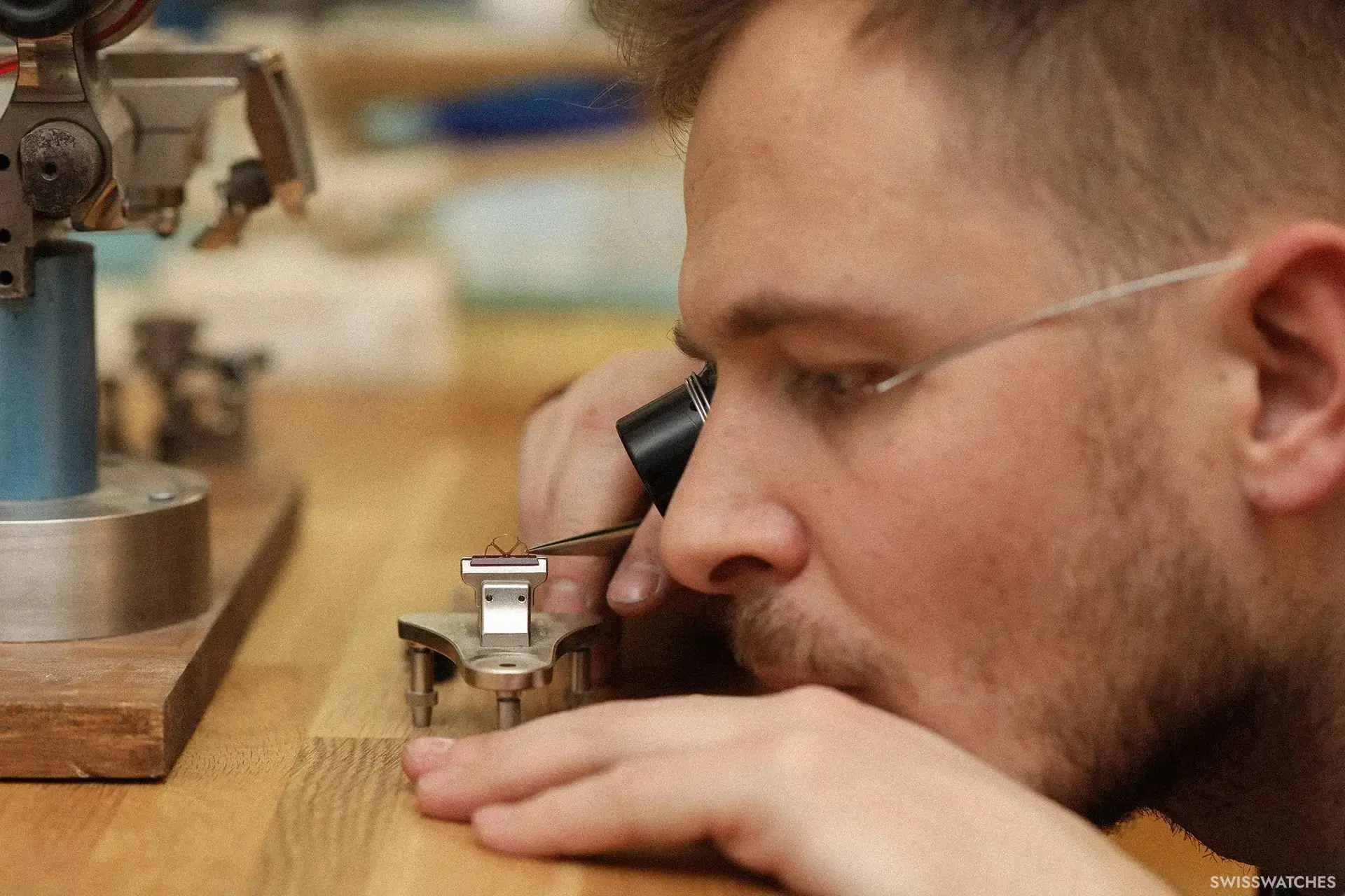 Ähnlich verhält es sich mit dem springenden Minutenzähler. Auf dem Papier mag er wie eine technische Nischenraffinesse wirken. In der Praxis sagt er viel über diese Uhr aus. Statt sich schleichend weiterzubewegen, springt der Minutenzähler präzise weiter, was das Ablesen der gestoppten Zeit erleichtert und dem Chronographen einen klareren, präziseren Rhythmus verleiht. Rexhep beschreibt ihn als exakter in der Nutzung, zugleich aber auch als deutlich schwieriger in der Umsetzung. Die Herausforderung besteht darin, zu kontrollieren, wie viel Energie dem Werk entnommen wird, wie diese Energie gespeichert und wieder freigesetzt wird und wie der Mechanismus in seine Ausgangsposition zurückkehrt, ohne unerwünschte Reibung oder Instabilität zu erzeugen. Es ist genau die Art von Detail, die viele Besitzer vielleicht nie vollständig wahrnehmen werden, die aber viel über den Ernst und die Konsequenz dieses Projekts erzählt.