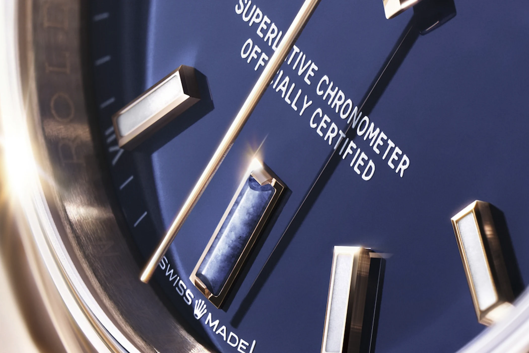 Auffällig ist dabei, wie breit Rolex das Jubiläum interpretiert. Die Oyster Perpetual wird zum zentralen Schauplatz des Jubiläums, die Datejust 41 greift mit einem grün lackierten Ombré-Zifferblatt tief ins Markenerbe, die Yacht-Master II kehrt technisch und ergonomisch neu aufgestellt zurück, die Day-Date 40 führt mit Jubilee Gold eine neue hauseigene Legierung ein und der Cosmograph Daytona erscheint erstmals als Rolesium-Variante mit weiß emailliertem Zifferblatt und neuartiger anthrazitfarbener Cerachrom-Lünette. Es ist also ein Jahr der gezielten Weiterentwicklung – und eines, in dem Rolex seine bekanntesten Modelle mit ungewöhnlich viel inhaltlichem Input auflädt.