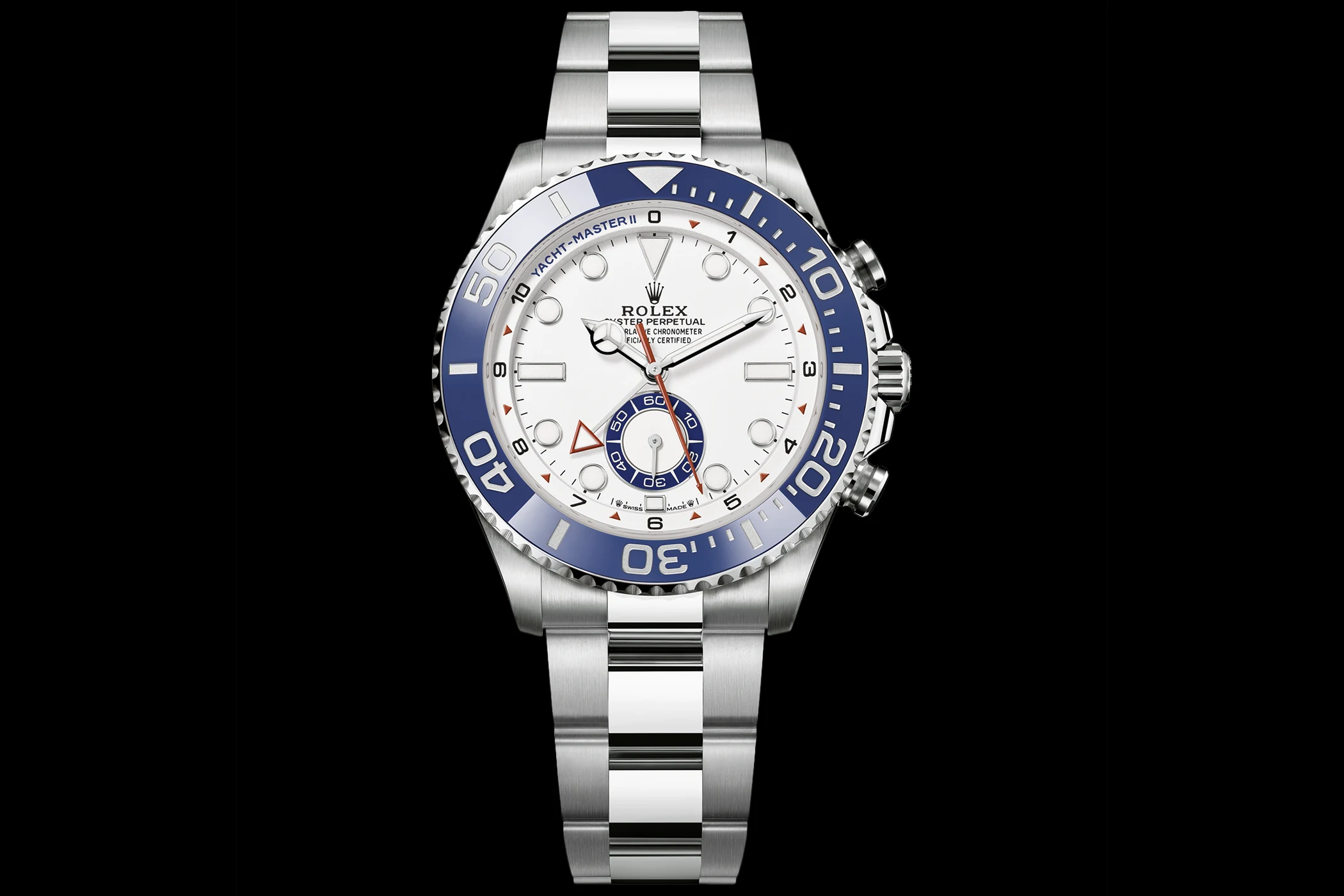Im Inneren arbeitet das neue Kaliber 4162, eine Weiterentwicklung des bisherigen 4161. Rolex spricht von einem komplett überarbeiteten Countdown-System, ergänzt durch wesentliche Neuerungen wie die Chronergy-Hemmung. Auch in der Gestaltung des Werks soll die Uhr anspruchsvoller ausfallen, etwa mit den Côtes de Genève und durchbrochener Schwungmasse. Angeboten wird die neue Yacht-Master II in Edelstahl Oystersteel oder 18 Karat Gelbgold, jeweils bei 44 Millimetern Gehäusedurchmesser. Damit bleibt sie groß, wirkt in ihrer neuen Generation aber klarer und kontrollierter.