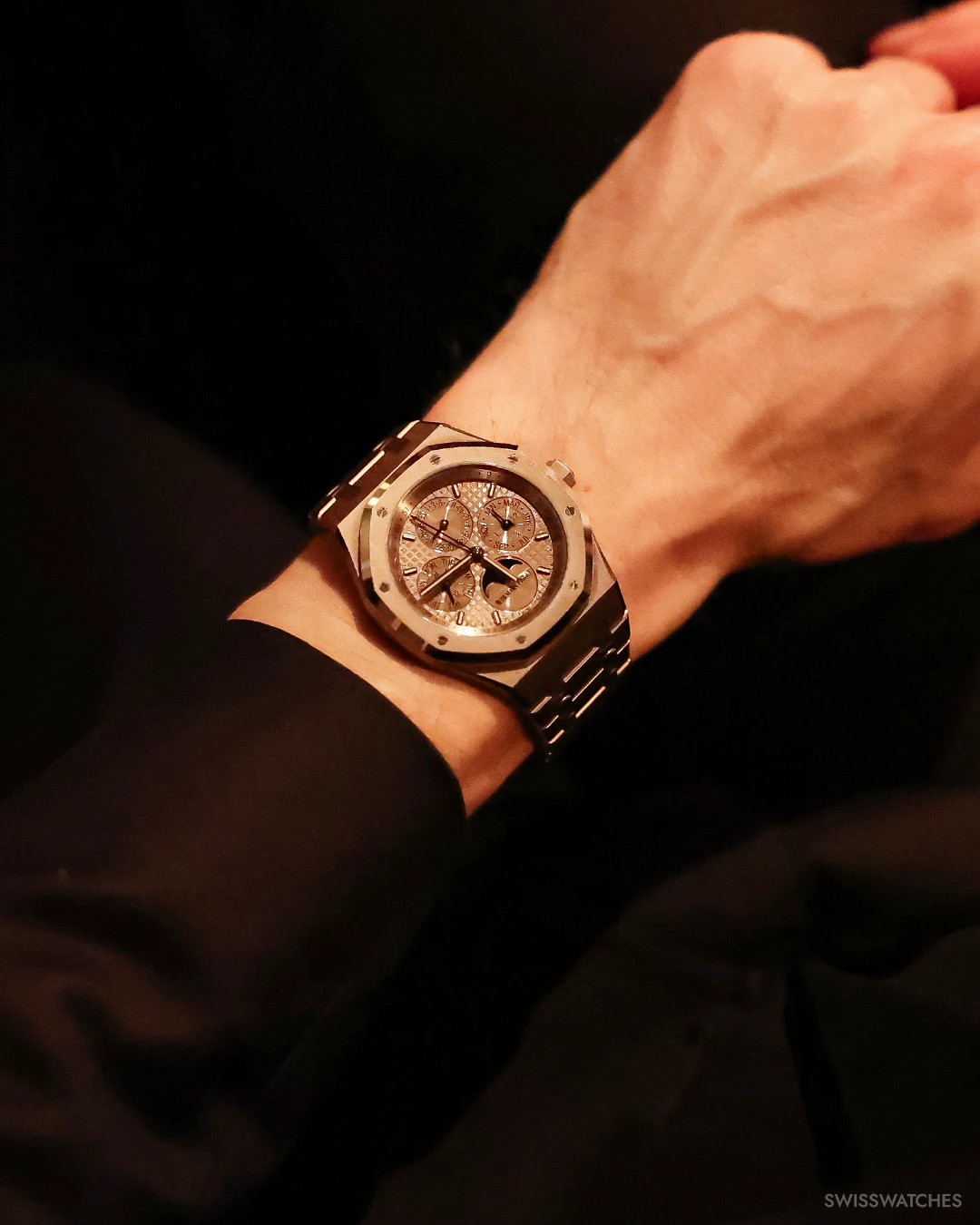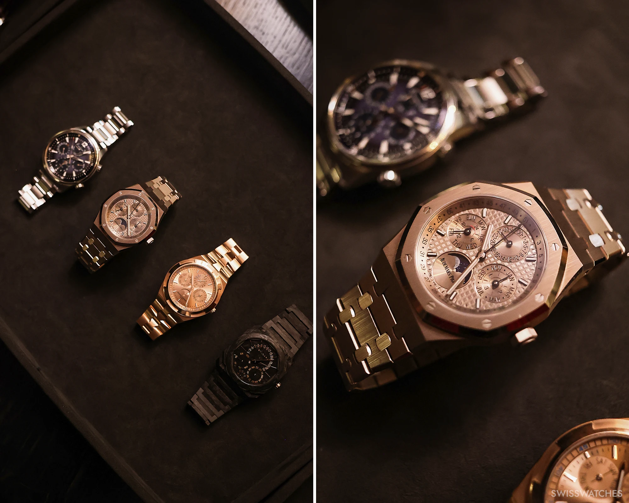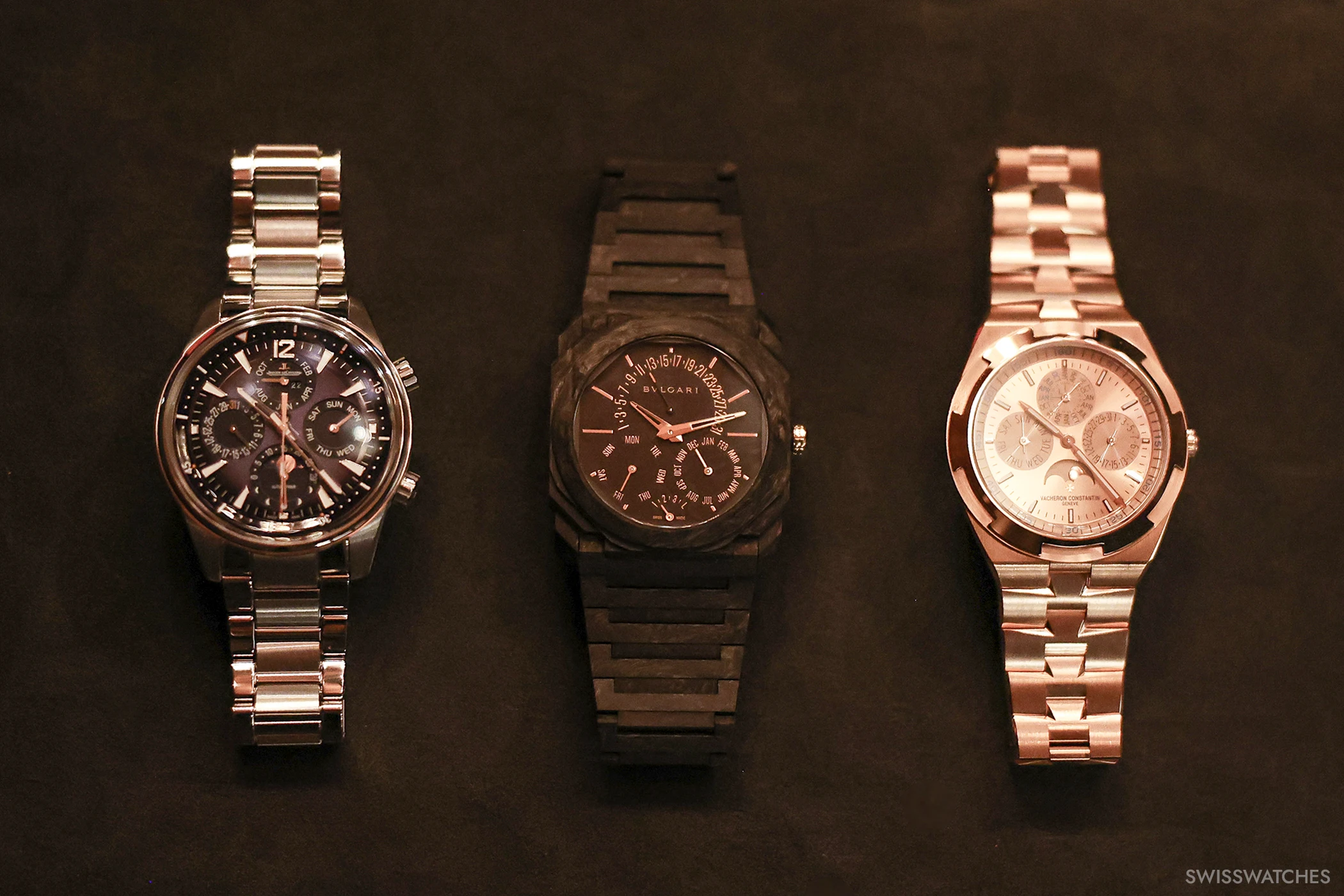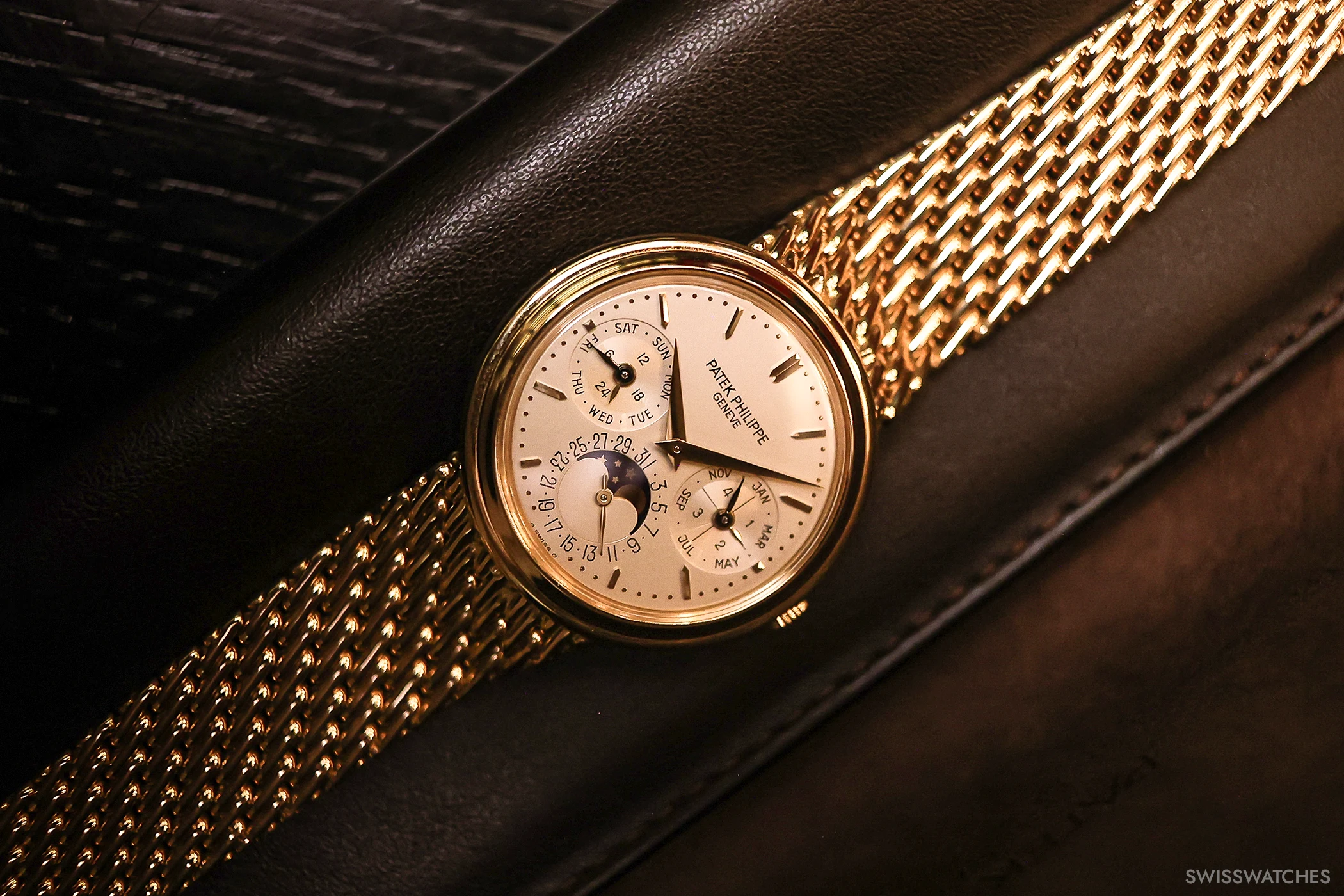 Der Ewige Kalender, eine der wohl schönsten und poetischten Komplikation der Uhrmacherei, feierte 2025 ein ganz besonderes Jubiläum. Ein Jahrhundert war vergangen, seit Patek Philippe im Jahr 1926 mit der Referenz 97975 die erste Armbanduhr mit Ewigem Kalender präsentierte. Es war allerdings ein Einzelstück – die serienmäßige Produktion erfolgte dann mit der Referenz 1518 im Jahr 1941. Das Jubiläum war also ein schöner Anlass für unseren ersten Swisswatches Salon, bei dem wir den Ewigen Kalender in all seinen Facetten scheinen ließen. Die Stars des Abends: einige der besten und spannendsten Ewigen Kalender Uhren überhaupt, die wohl in dieser kuratierten Zusammenstellung noch nie irgendwo an einem Ort und einem Abend so zusammenkamen. Von Audemars Piguets neu entwickeltem Ewigen Kalender mit Kaliber 7138 in Sand Gold, über Patek Philippes Ewiger Kalender Retrograde 6159G oder dem weltweit flachsten Ewigen Kalender von Bulgari bis hin zu historischen Stücken wie dem IWC Da Vinci Ewigen Kalender, der in den 1980er Jahren von Uhrmacherlegende Kurt Klaus entworfen wurde und die Bedienbarkeit des Ewigen Kalenders revolutionierte. Aber auch weniger bekannte Ewige Kalender von MB&F, Hermès oder Panerai zeigten eindrucksvoll, wie vielfältig und innovativ die Uhrenbranche beim Thema Kalenderuhren ist.