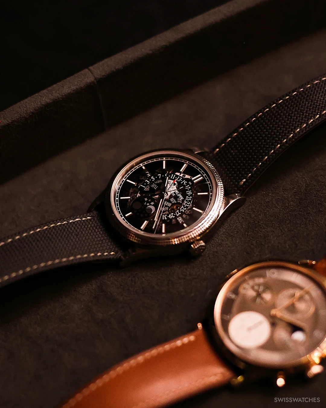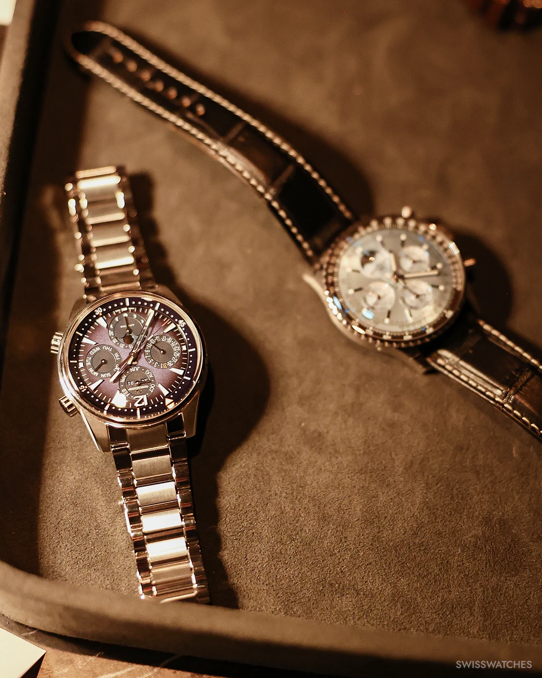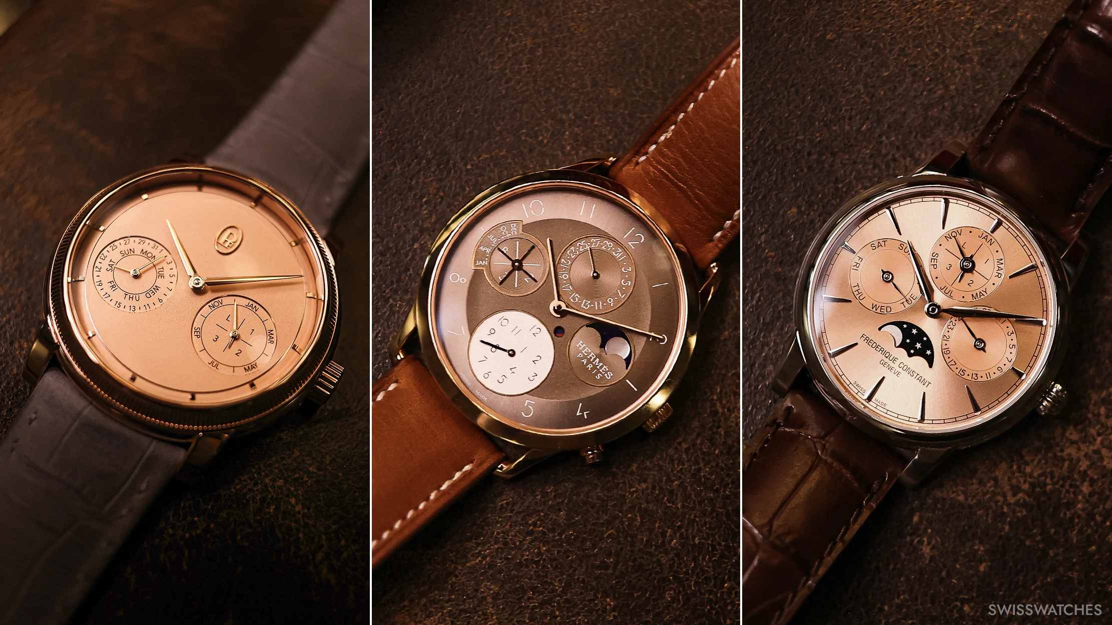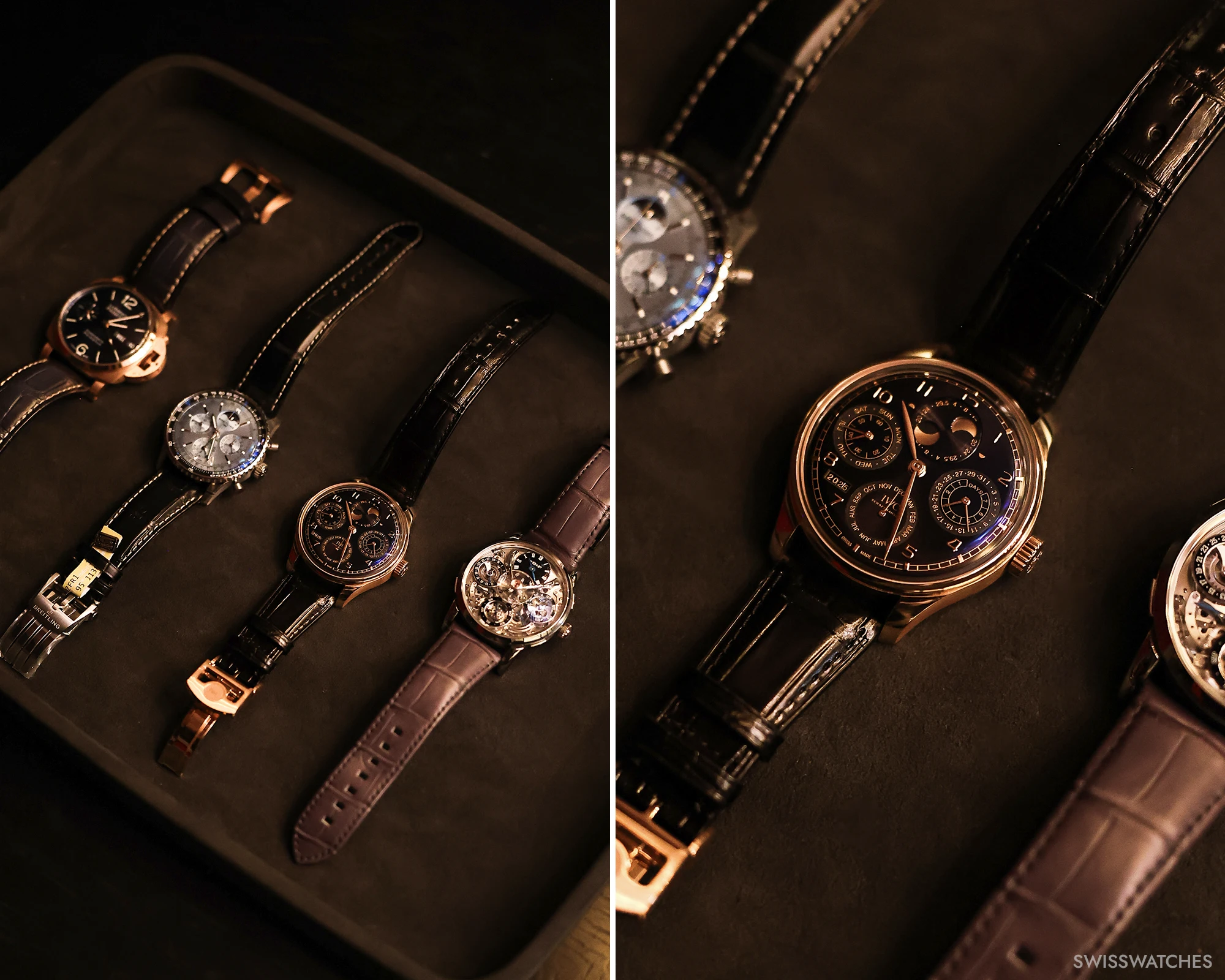 Der Ewige Kalender, eine der wohl schönsten und poetischten Komplikation der Uhrmacherei, feierte 2025 ein ganz besonderes Jubiläum. Ein Jahrhundert war vergangen, seit Patek Philippe im Jahr 1926 mit der Referenz 97975 die erste Armbanduhr mit Ewigem Kalender präsentierte. Es war allerdings ein Einzelstück – die serienmäßige Produktion erfolgte dann mit der Referenz 1518 im Jahr 1941. Das Jubiläum war also ein schöner Anlass für unseren ersten Swisswatches Salon, bei dem wir den Ewigen Kalender in all seinen Facetten scheinen ließen. Die Stars des Abends: einige der besten und spannendsten Ewigen Kalender Uhren überhaupt, die wohl in dieser kuratierten Zusammenstellung noch nie irgendwo an einem Ort und einem Abend so zusammenkamen. Von Audemars Piguets neu entwickeltem Ewigen Kalender mit Kaliber 7138 in Sand Gold, über Patek Philippes Ewiger Kalender Retrograde 6159G oder dem weltweit flachsten Ewigen Kalender von Bulgari bis hin zu historischen Stücken wie dem IWC Da Vinci Ewigen Kalender, der in den 1980er Jahren von Uhrmacherlegende Kurt Klaus entworfen wurde und die Bedienbarkeit des Ewigen Kalenders revolutionierte. Aber auch weniger bekannte Ewige Kalender von MB&F, Hermès oder Panerai zeigten eindrucksvoll, wie vielfältig und innovativ die Uhrenbranche beim Thema Kalenderuhren ist.