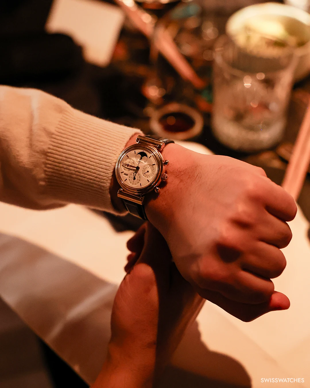 Für unseren ersten Swisswatches Salon empfingen wir unsere Gäste an einem ganz besonderen Ort: Dem „Mirror Chamber“ des JIN GUI Restaurants in Hamburg, in dem unsere Gäste nicht nur alles über Ewige Kalender erfuhren und Uhren anlegen konnten, sondern auch selbst ihre seltenen und kostbaren Sammlerstücke präsentierten und für einen illustren und interaktiven Austausch sorgten.