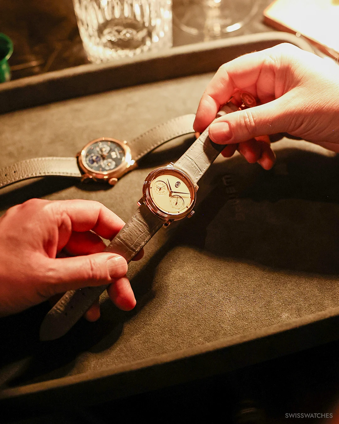 Mit dem Swisswatches Salon haben wir einen Ort für Uhrenenthusiasten geschaffen, die eine echte Leidenschaft für mechanische Uhrmacherkunst teilen. Hier können sie sich in diskreter Atmosphäre und jenseits der digitalen Geräuschkulisse über ihre Ideen, Erfahrungen und Perspektiven austauschen. Hier drehen sich die Gespräche um Handwerkskunst, Design und die Geschichten hinter den besonderen Zeitmessern – nicht um Trends.