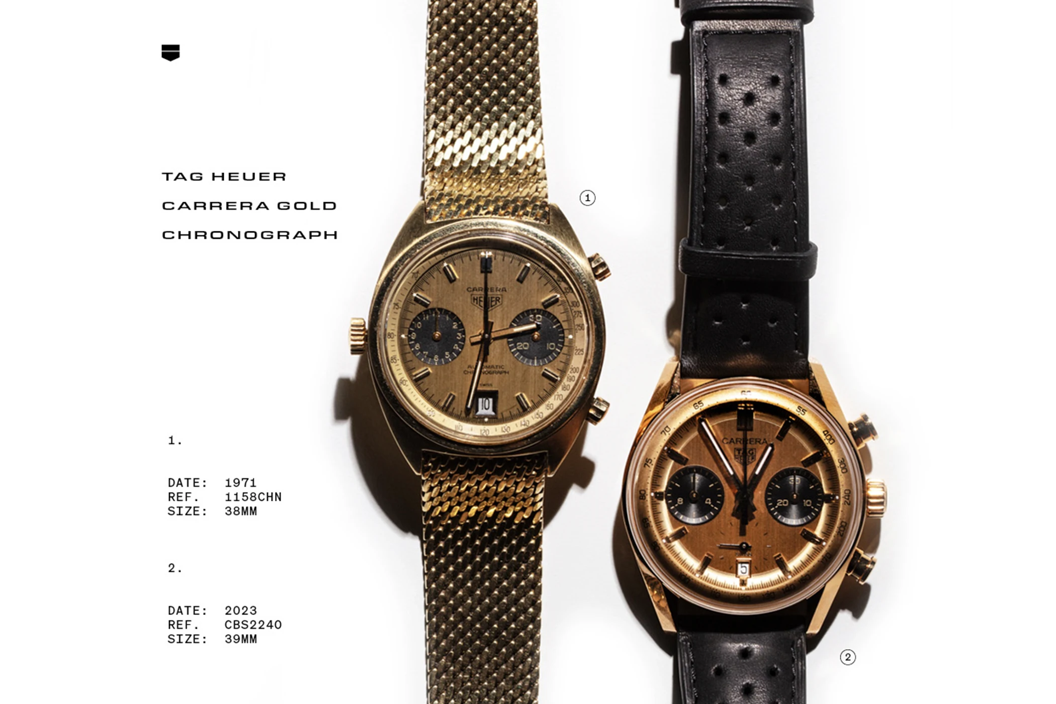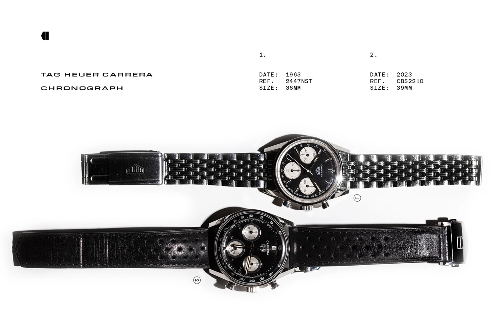 Tag Heuer wiederum hat bis heute in 166 Jahren mit besonderen Technologien immer wieder seinen Pioniergeist im Bereich der Chronographen bewiesen: Dazu zählen der Schwingtrieb für mechanische Stoppuhren im Jahr 1887, der Mikrograph im Jahr 1916 sowie das erste Automatik-Chronographenwerk – Calibre 11 – im Jahr 1969 (jene Monaco, die Steve McQueen in Le Mans trug). Vereinfacht kann man sagen: Ziemlich genau seit der Gründung Heuers in den 1880er-Jahren stehen Chronographen im Mittelpunkt unseres Handelns. Im Gegensatz zum Comeback dieser Uhr unter LVMH-Führung im Jahr 1996 tragen heute natürlich alle Carrera-Modelle den berühmten Namen auf dem Zifferblatt. 2021 gingen die beiden Namenshalter, Porsche und TAG Heuer, selbst eine Partnerschaft mit eigenen Sondermodellen ein.