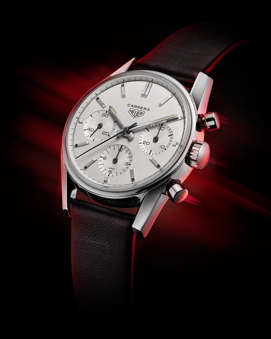 Für die neue Uhr wie für das Original gilt: Nichts soll von der Funktion ablenken. Natürlich ist es kein Zufall, dass Porsche auch seinem legendären Modell 911 den Namenszusatz gab, denn Carrera bedeutet nichts anderes als „Rennen“, vom Spanischen ins Deutsche übersetzt. Porsche nahm nach mehreren Siegen in seiner Klasse jeweils die leistungsstärksten Fahrzeuge einer Baureihe als Carrera – wie erstmals beim Porsche 356 A Carrera. Das Jahr der Lancierung der Carrera, 1963, markiert nicht nur einen wichtigen Meilenstein in der Geschichte von TAG Heuer, sondern Porsche führte im selben Jahr sein wichtigstes Auto ein, den Porsche 911. Dass dieses Fahrzeug ebenso mit dem Namen Carrera verwachsen ist, hängt mit dem 1973 vorgestellten 911 Carrera RS 2.7 zusammen, einem besonders leistungsfähigen und sehr seltenem Porsche-Modell.