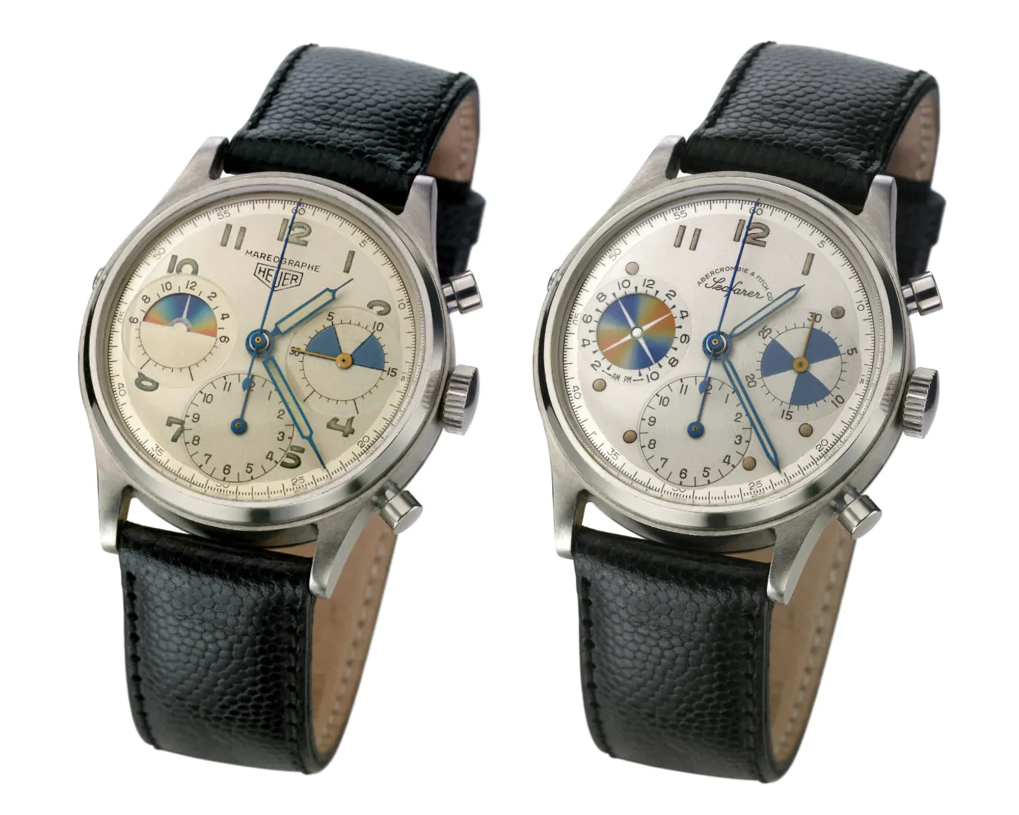 Um die Geschichte der Modelle zu erzählen, die zur nun im Rahmen der LVMH Watch Week 2026 vorgestellten TAG Heuer Seafarer führten, müssen wir die Uhr bis in die Mitte der 1940er-Jahre zurückdrehen. Damals produzierte Heuer zahlreiche Zeitmesser, darunter auch Chronographenuhren, für das US-amerikanische Einzelhandelsunternehmen Abercrombie & Fitch auf Handelsnamenbasis, also unter dem Namen von Abercrombie & Fitch – seinerzeit die prestigeträchtigste Adresse für Sportartikel schlechthin. Der damalige Präsident von Abercrombie & Fitch war Walter Haynes. Haynes, ein begeisterter Fischer, erkannte aufgrund seines Hobbys die Notwendigkeit einer Uhr, die die Gezeiten anzeigt, führte erste Berechnungen für eine solche Komplikation durch und ließ ein entsprechendes Patent anmelden. Über die Verbindung zu Heuer trat Haynes an Charles-Edouard Heuer – Enkel des Firmengründers Edouard Heuer, der das Unternehmen in dritter Generation leitete – heran, um sein Konzept der Gezeitenuhr weiterzuentwickeln und die Uhr unter dem Namen „Solunar“ für den traditionsreichen New Yorker Sportartikelhändler zu fertigen.