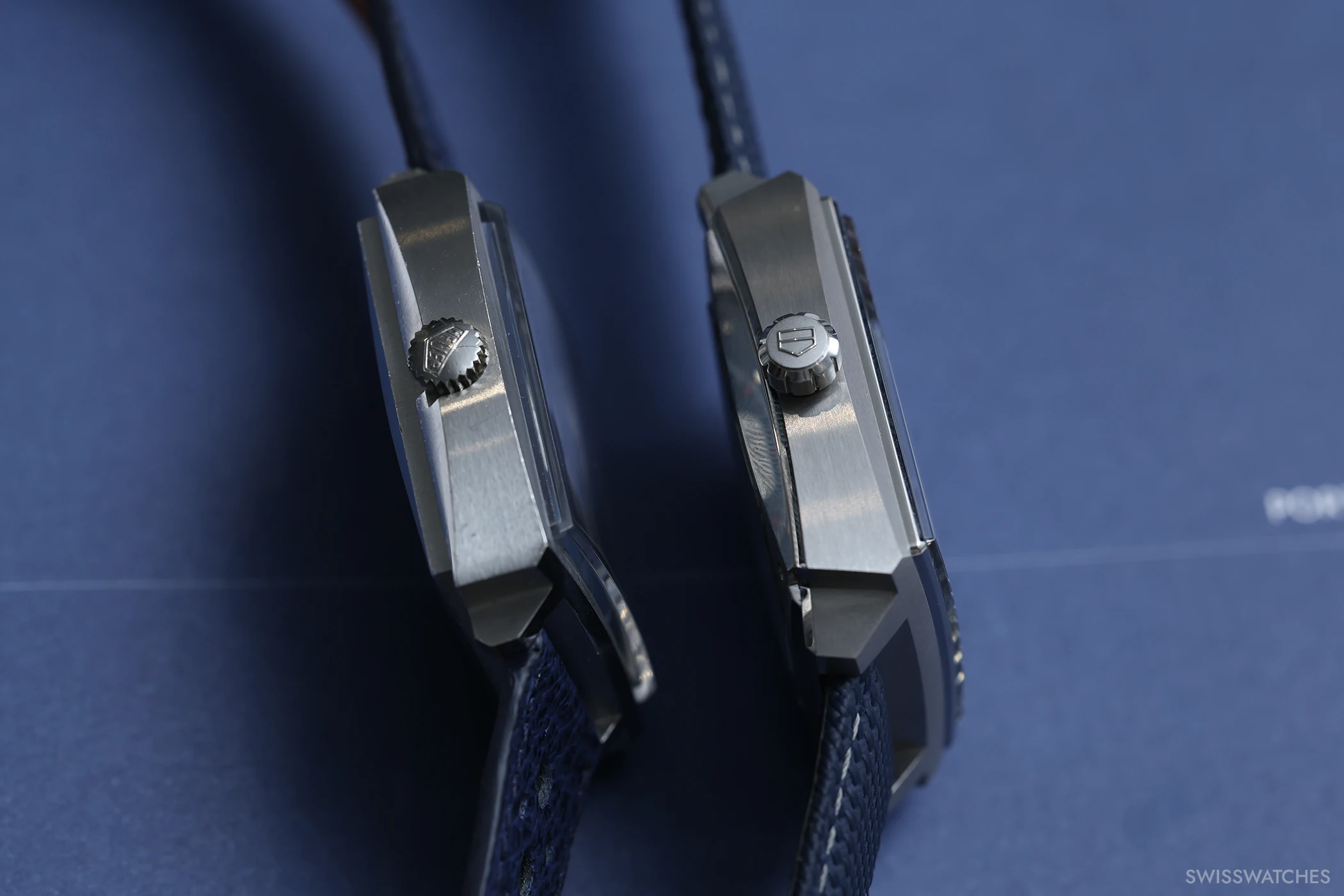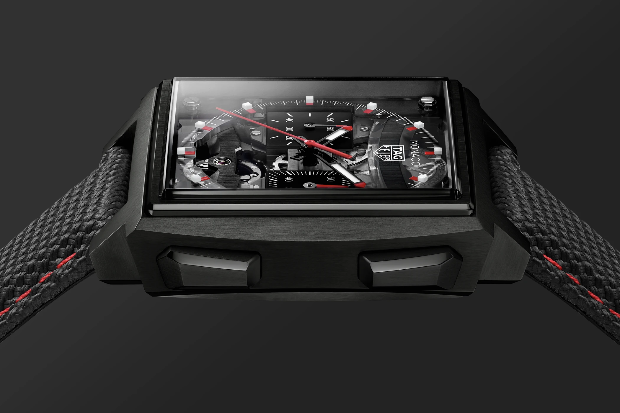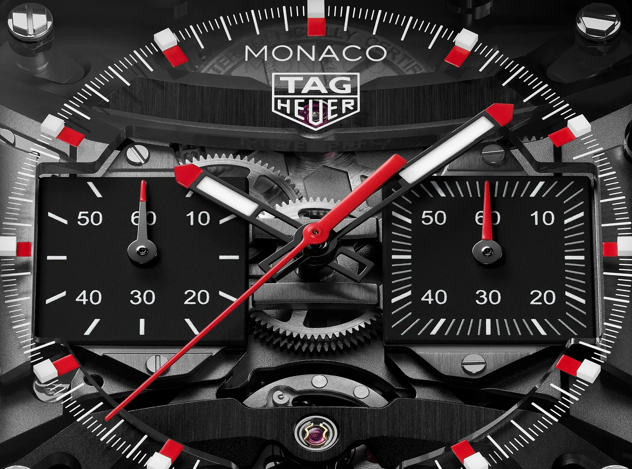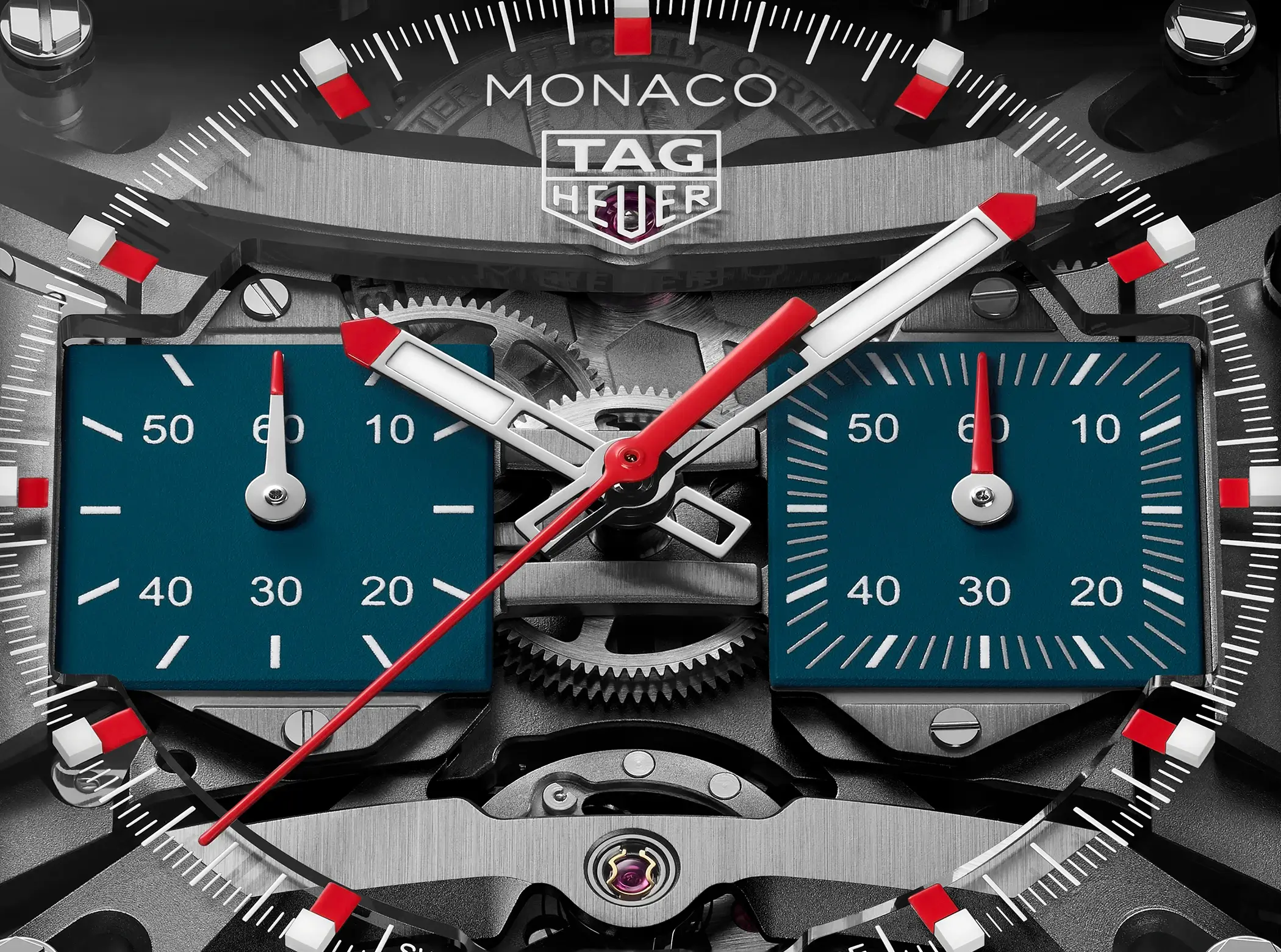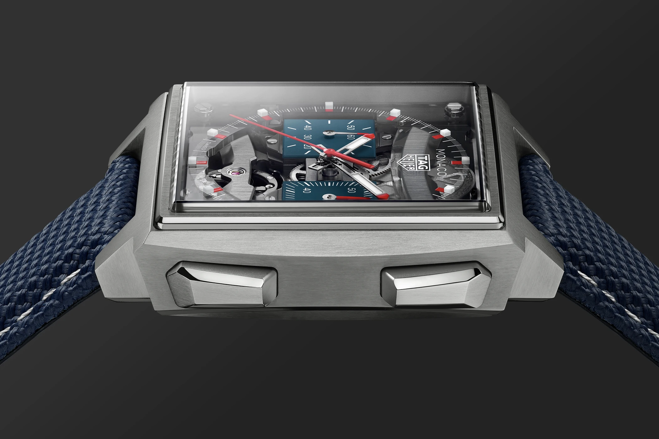 Auch die Drücker folgen den Radien und sind daher keilförmig. Wie beim Gehäuse sorgen die Fasen dafür, dass keine scharfen Kanten entstehen. Im Gegensatz zu den Stiftdrückern des Ursprungsmodells bieten die neuen Bedienelemente eine große Oberfläche, was die Bedienung weiter vereinfacht. Das neue Gehäusedesign wird auch wegweisend für weitere zukünftige Monaco-Modelle sein, wie den ebenfalls auf der Watches and Wonders 2026 vorgestellten Monaco Chronograph mit Kaliber TH20-11.