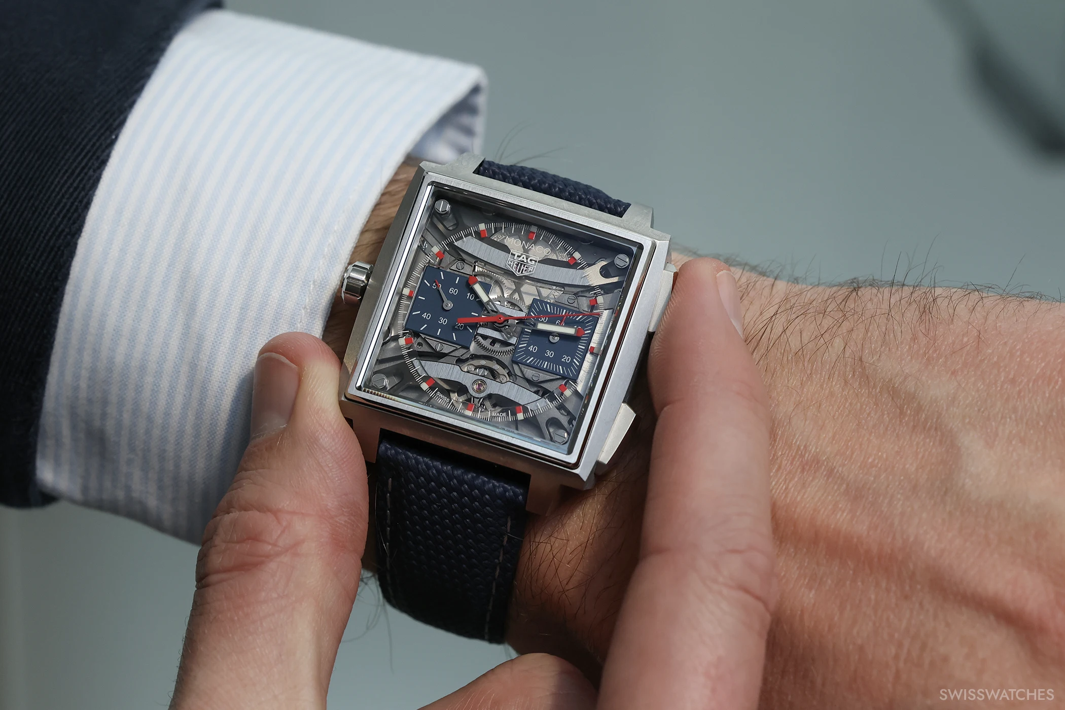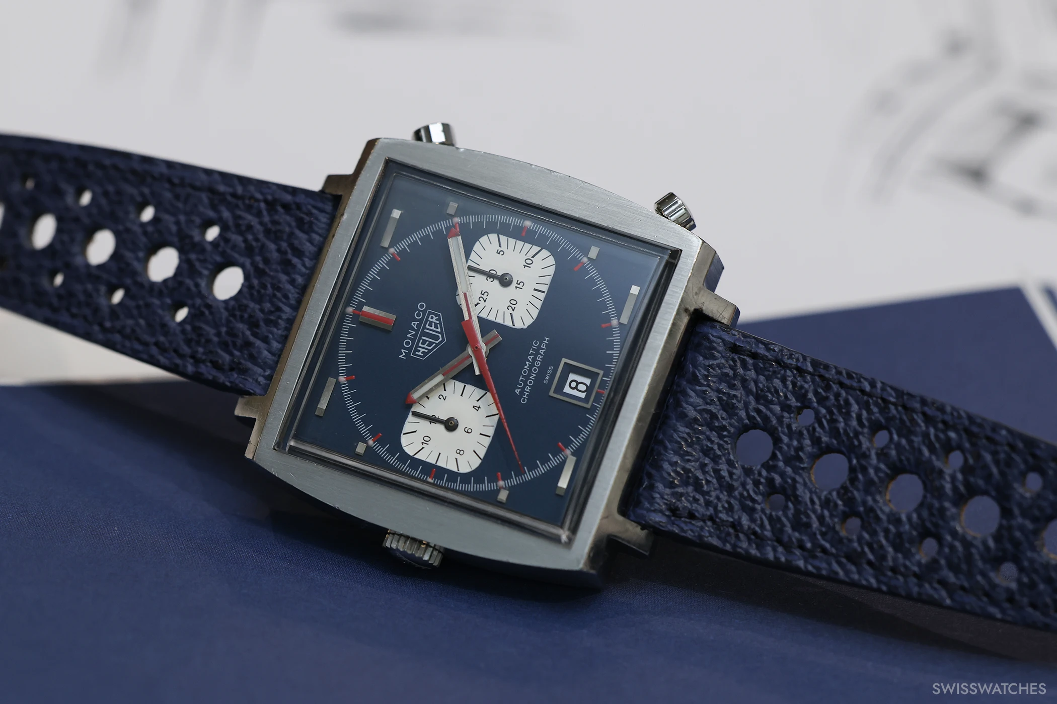 Beim Designprozess gab es drei Ziele: Erstens sollte die Monaco als über 50 Jahre alte Ikone ihrem Ursprung treu bleiben. Zweitens sollte ein Entwurf aus einem Guss entstehen, der das Design zeitgemäß interpretiert. Und drittens sollte wie beim Werk Funktionalität und die Verbesserung für den Träger fokussiert werden. Keine kleine Aufgabe für die Designer also. Aber man erkennt die Umsetzung gut in der finalen Uhr.