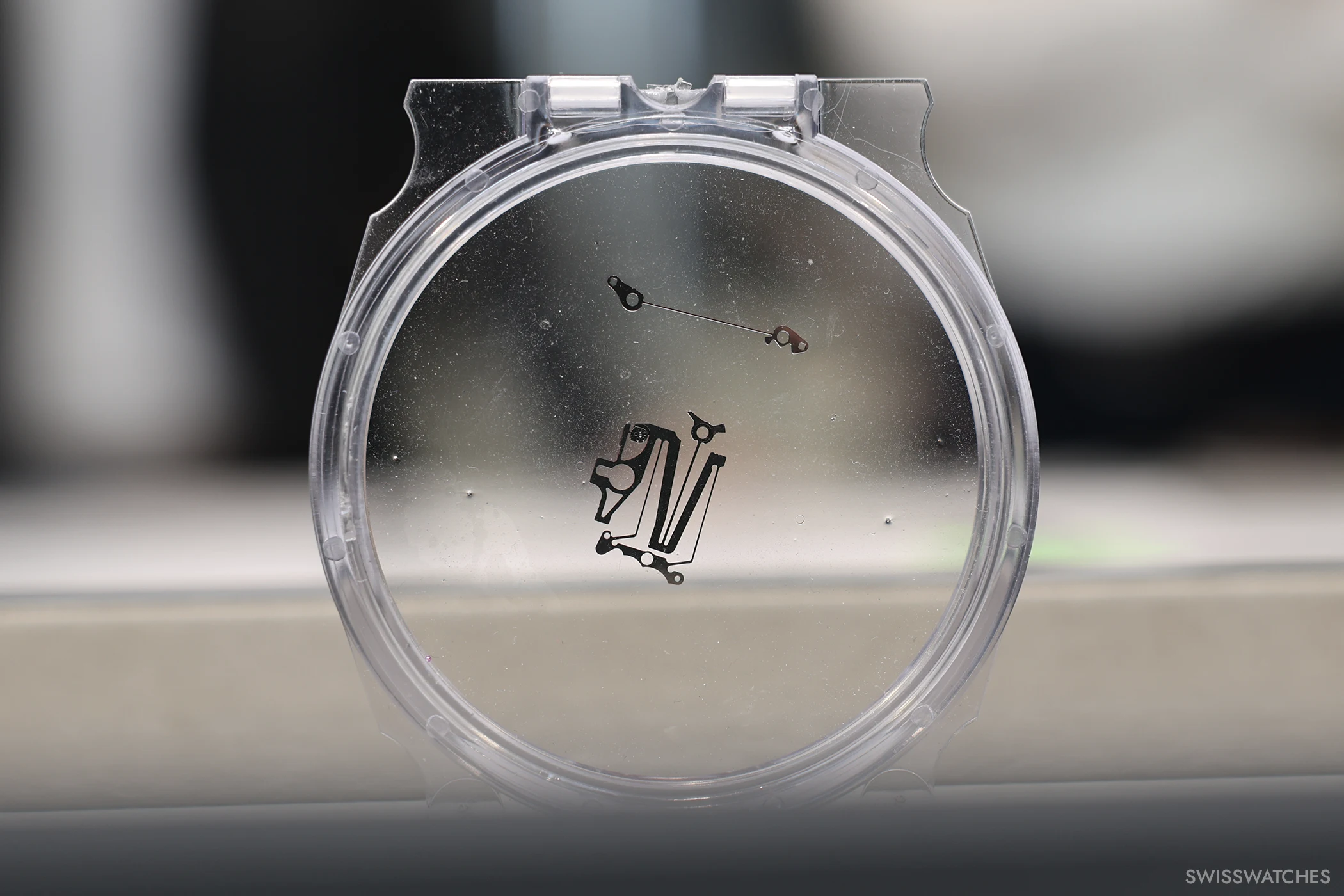 Beeindruckend sind auch die Verschleißtests, bei denen eine Uhr lose in einer Box mit unterschiedlichen Materialien tagelang von einem Gerät geschüttelt wird. Die Mitarbeiter befüllen die Boxen mit Keramik-Pellets, Sand, kleinen Kieselsteinen oder Dingen, die man im Rucksack oder der Handtasche hat (Taschentücher, Münzen, Schlüssel etc.). So wird jahrelanger Abrieb simuliert, um sicherzustellen, dass sich auch dann noch Drücker und Krone bedienen lassen.