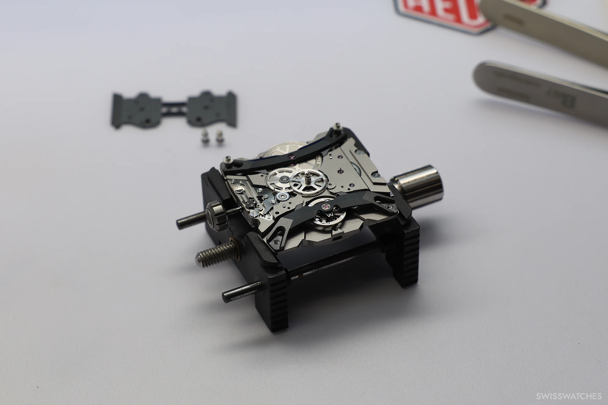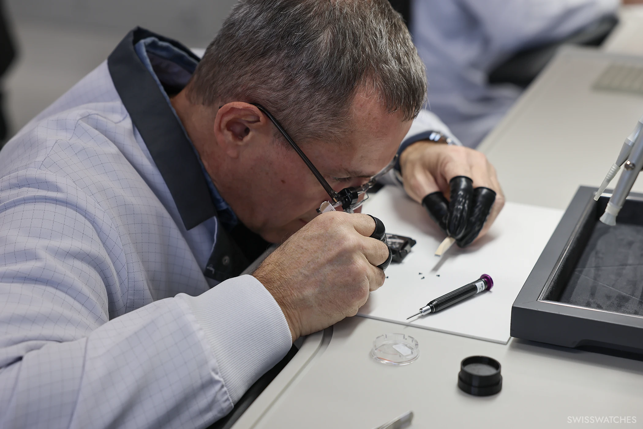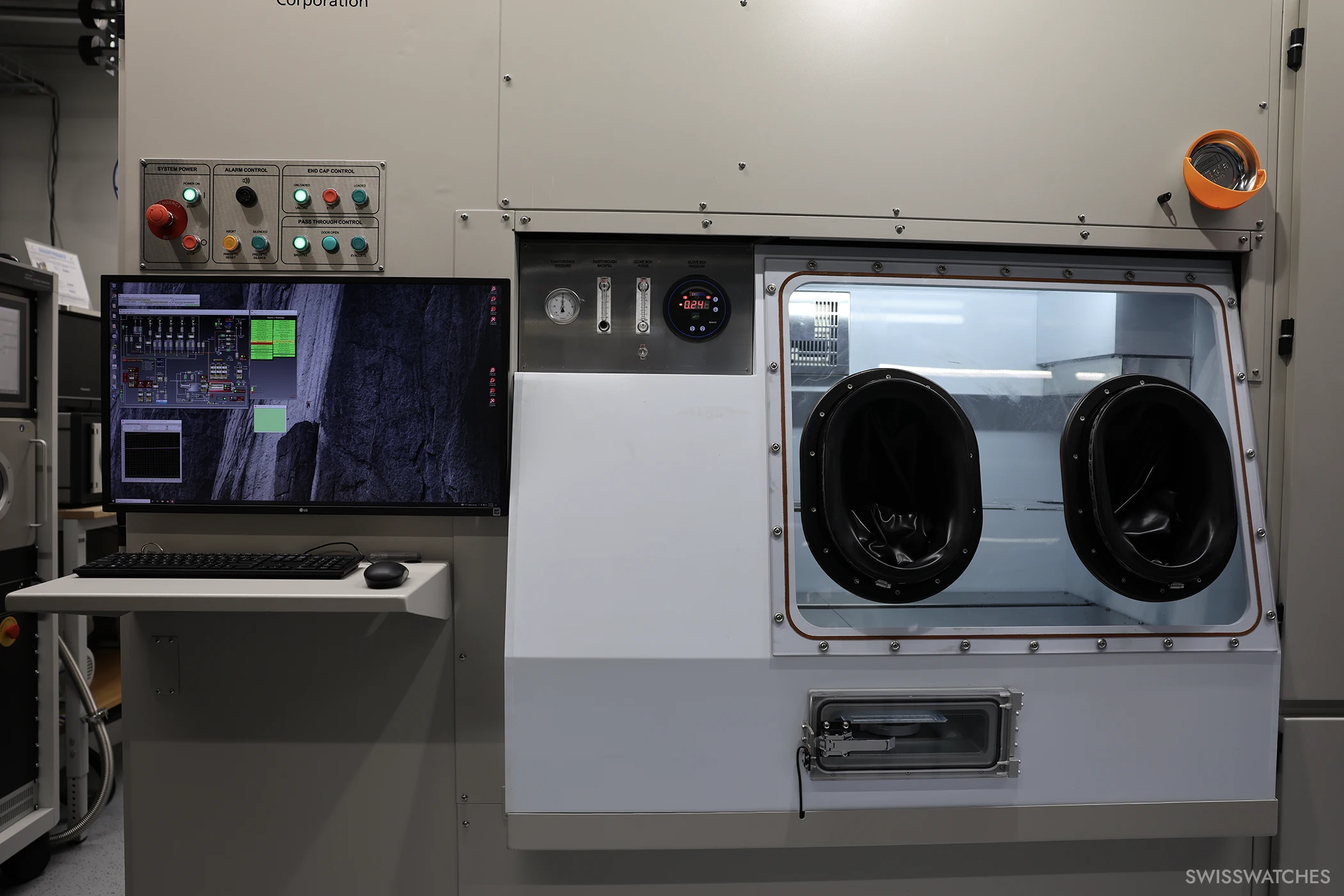 Das Gleiche gilt auch für einen Raum, der speziell den Werken gewidmet ist. Neben Ganggenauigkeit und Aufzugsleistung testen die Mitarbeiter hier etwa, wie sich verschiedene Schmiermittel und Mengen an Öl an unterschiedlichen Stellen des Werks auswirken. Dafür stehen auch Hochgeschwindigkeitskameras zur Verfügung.