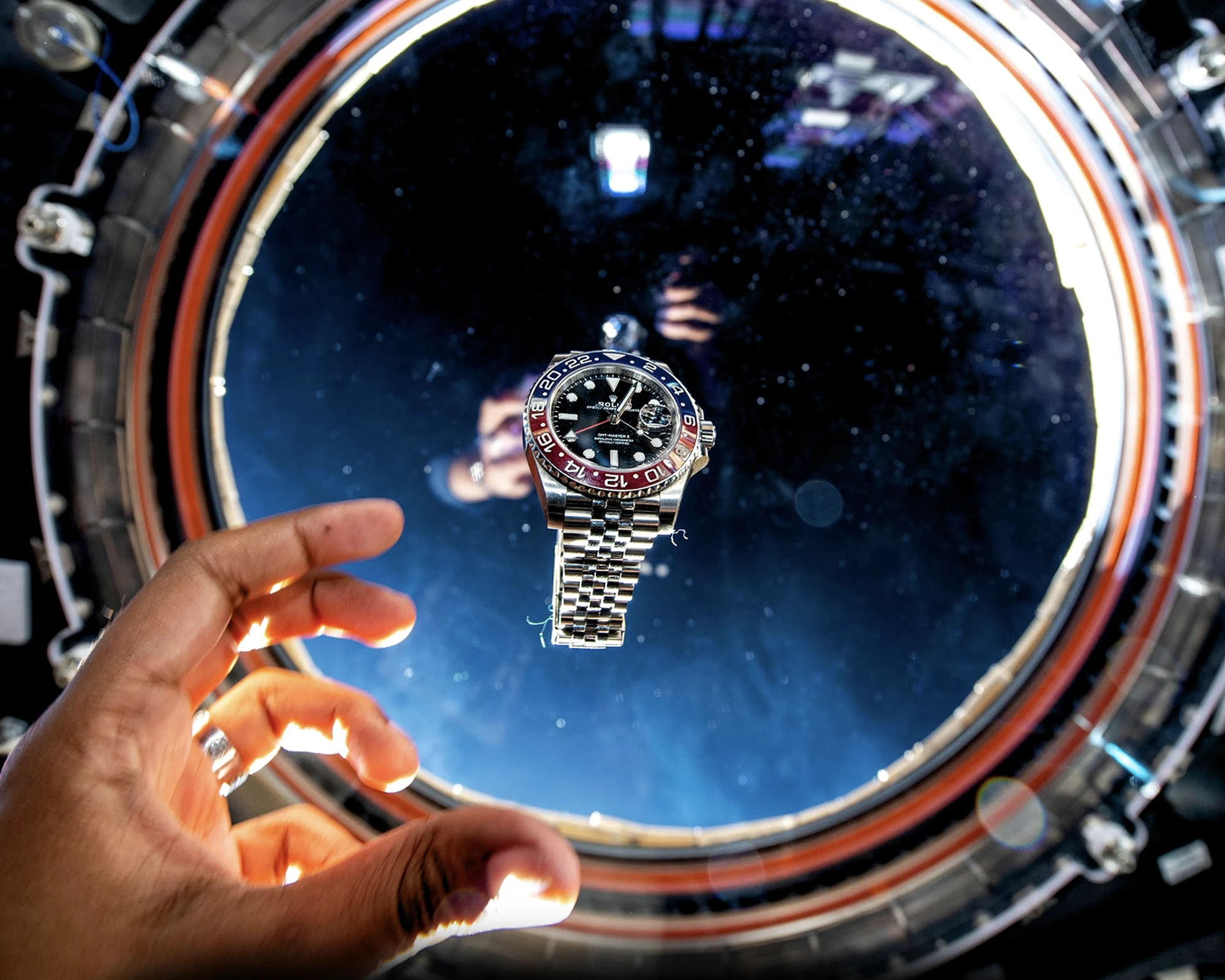 Während der Mission Axiom Mission 2 (Ax-2), einem bemannten Flug zur Internationalen Raumstation an Bord einer Crew-Dragon-Raumkapsel, nahm der saudi-arabische Kampfpilot und Astronaut Ali Alqarni seine Rolex GMT-Master II mit ins All und hielt dieses eindrucksvolle Bild fest.
