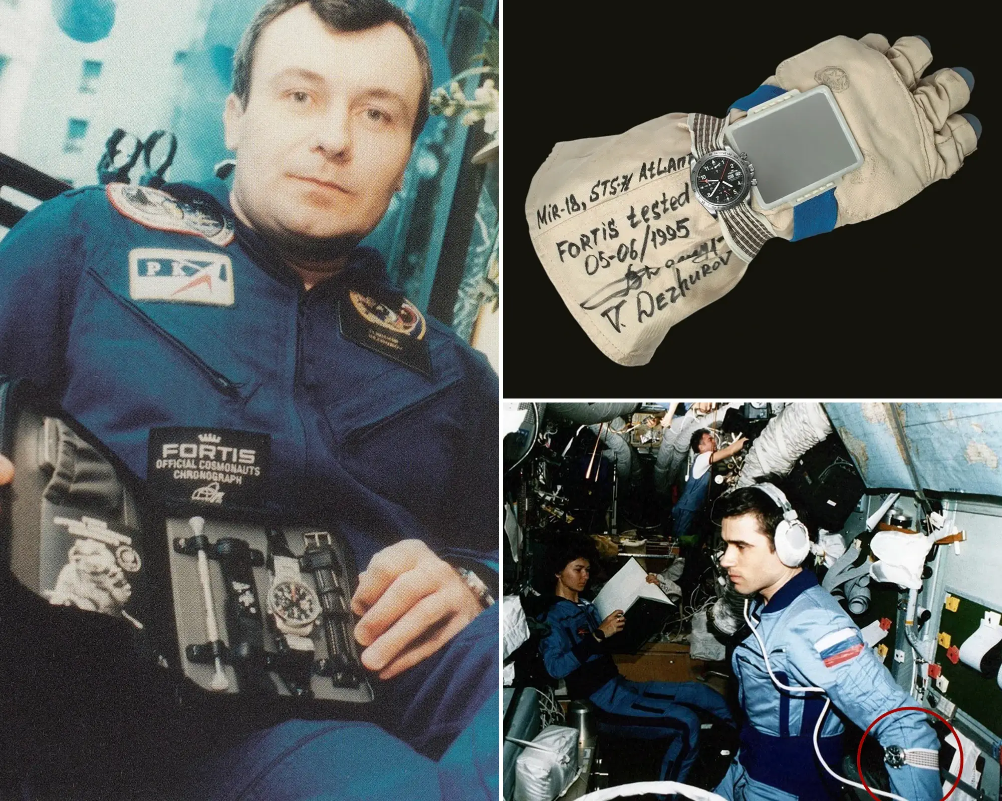 Der im Jahr 1994 vorgestellte Fortis Official Cosmonauts Chronograph, angetrieben vom klassischen Lemania-5100-Kaliber, war die erste Uhr, die offiziell von der russischen Raumfahrtbehörde Roscosmos für den Einsatz zugelassen wurde und damit ein bedeutender Teil der Uhren im Weltraum. Zwischen 1994 und 2003 kam sie sowohl auf Missionen zur Raumstation MIR als auch zur Internationalen Raumstation (ISS) zum Einsatz. Dieser ursprüngliche Cosmonauts Chronograph wurde schließlich 2003 vom Fortis B-42 Official Cosmonauts Chronograph abgelöst. Anstelle des Lemania-Werks kam nun ein ETA 7750 zum Einsatz; zudem wuchs das Gehäuse auf 42 Millimeter an – unter anderem, um die Bedienbarkeit mit sperrigen Raumfahrthandschuhen zu verbessern.
