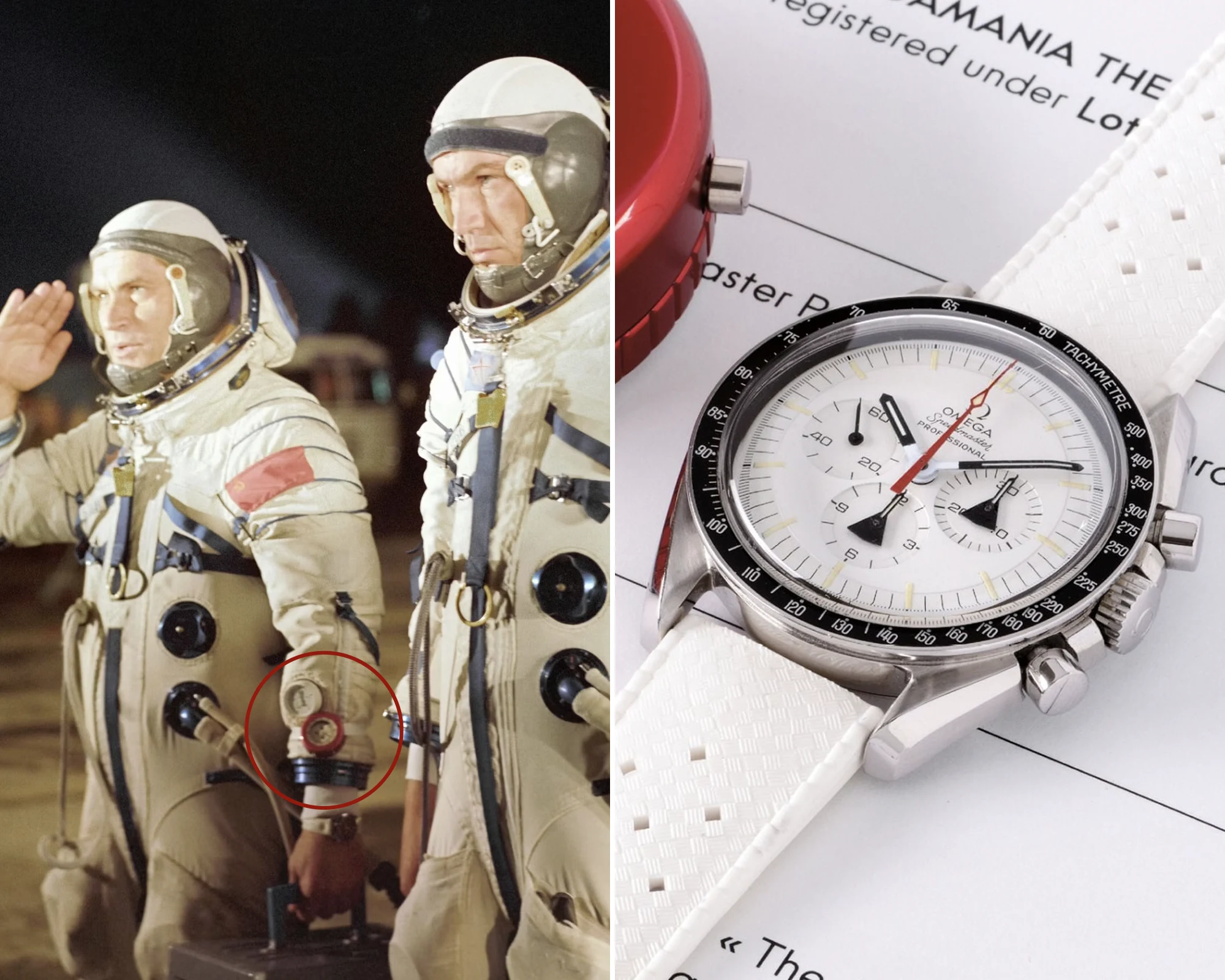 Am 18. März 1965 startete die Woschod-2-Mission mit Alexei Leonow und seinem Kommandanten Pawel Beljajew an Bord in Richtung Weltraum, mit dem erklärten Ziel, den ersten Außenbordeinsatz eines Kosmonauten durchzuführen. In der Erdumlaufbahn verließ Leonow sein Raumschiff und wurde somit zum ersten Menschen in der Geschichte, der frei außerhalb seines Raumfahrzeugs im Weltraum schwebte. Berühmt wurde Leonow jedoch auch durch das, was während dieses Weltraumspaziergangs geschah: Während des 12-minütigen Schwebens außerhalb seiner Raumkapsel, mit der er lediglich über eine 4,5 Meter lange Sicherheitsleine verbunden war, blähte und versteifte sich sein Raumanzug infolge des Druckunterschieds zum Vakuum des Weltraums so stark, dass ein Wiedereinstieg in die Luftschleuse unmöglich wurde. Um diesem Zustand entgegenzuwirken, verringerte Leonow den Druck seines Raumanzugs über ein auf Höhe des rechten Oberschenkels befindliches Ventil auf den Notmodus und konnte durch die entweichende Luft in die Schleuse und schließlich in das Raumschiff zurückkehren. Während Alexei Leonow den ersten Außenbordeinsatz im freien Weltraum vollzog, trug er einen Strela 3017 Chronographen mit cremefarbenem Zifferblatt der ersten Moskauer Uhrenfabrik am Handgelenk.