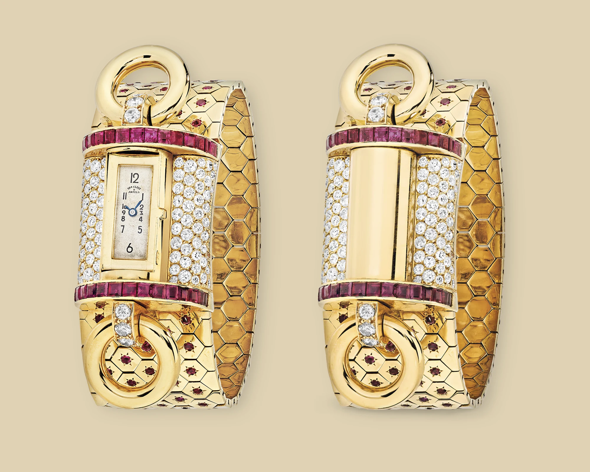 Offensichtlich betrachtet Van Cleef & Arpels seit Langem Uhren nicht nur als Präzisionsinstrumente, sondern als Schmuckstücke, Kunstwerke und Ausdruck von Emotionen. Die ersten sogenannten „Secret Watches“ der Maison, die in den 1920er-Jahren erschienen, wurden als Haute-Joaillerie-Halsketten getragen. Dabei handelte es sich um Zeitmesser, die sich in aufwendig mit Edelsteinen besetzte Anhänger oder Broschen verwandelten und der Trägerin oder dem Träger die Wahl ließen, wie die Zeit sie begleiten sollte. Es war der Beginn einer Revolution in der Welt der Uhren und des Schmucks.