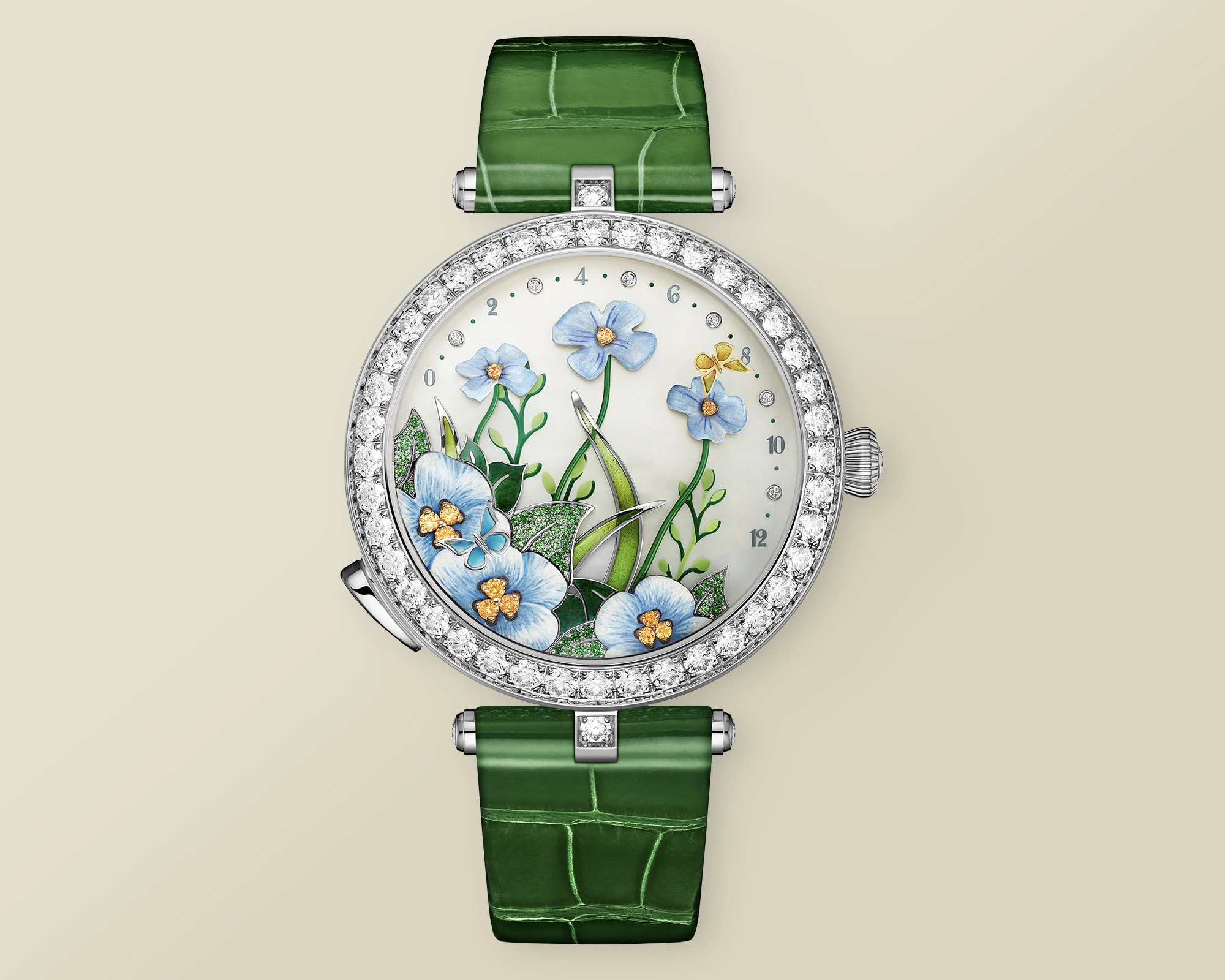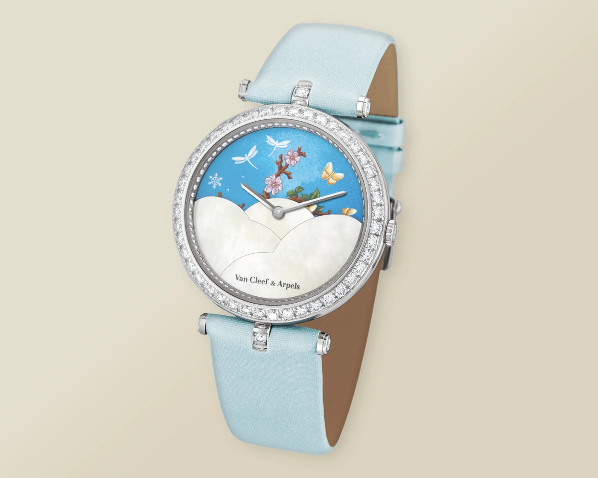 Diese Philosophie reicht bis ins Jahr 1906 zurück, als die Maison bereits im Jahr ihrer Gründung ihren ersten Zeitmesser schuf. Ein Jahrhundert später sollte die Jubiläumsuhr diese Identität in besonderer Weise verdichten: die Lady Arpels Centenaire mit rotierendem Emaillezifferblatt. Mit floralen Motiven sowie Darstellungen von Schmetterlingen, Libellen und Schneeflocken, die die wechselnden Jahreszeiten symbolisieren, drehte sich das Zifferblatt in einem Zyklus von 365 Tagen und veränderte sich Tag für Tag, um den Lauf der Jahreszeiten widerzuspiegeln. Diese poetische Idee, die Zeit zu genießen statt sie lediglich anzuzeigen, markierte den Beginn dessen, was die Maison heute „The Poetry of Time“ nennt.