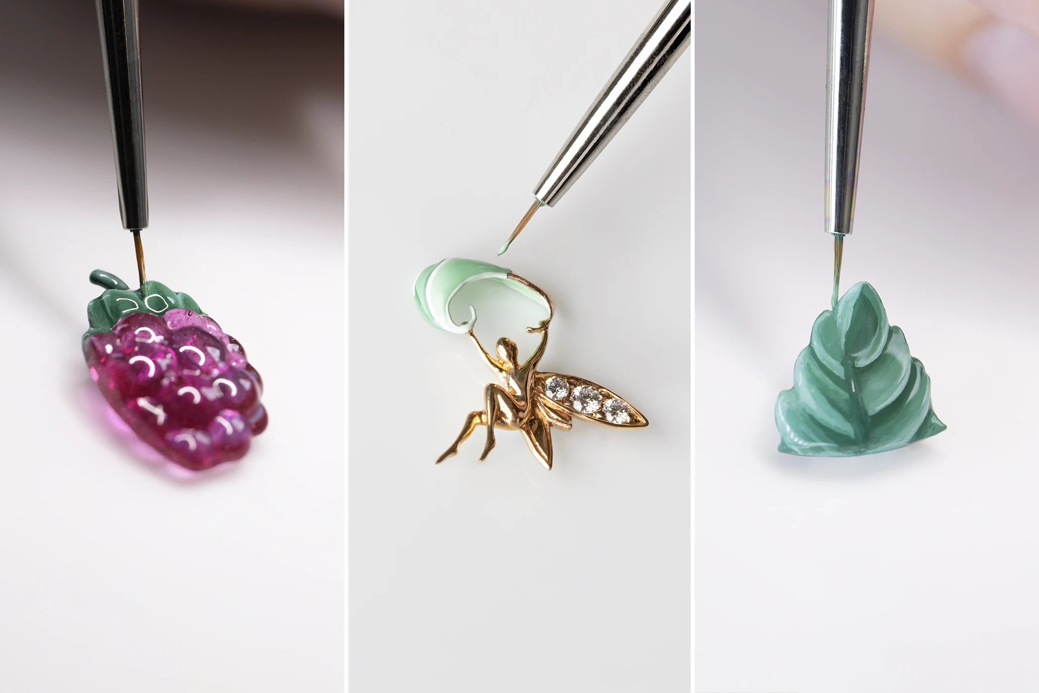 Techniken wie Grisaille erzeugen mondbeschienene, monochrome Szenen. Plique-à-jour wird wiederum eingesetzt, um Flügel zu erschaffen, die bei durchscheinendem Licht leuchten. Warme und kalte Farben lassen sich oft nicht zusammen brennen (sie nehmen Energie unterschiedlich auf), sodass die Zifferblatterstellung zu einer Choreografie aus Hitze und Timing wird.