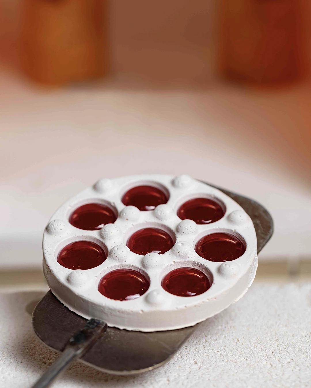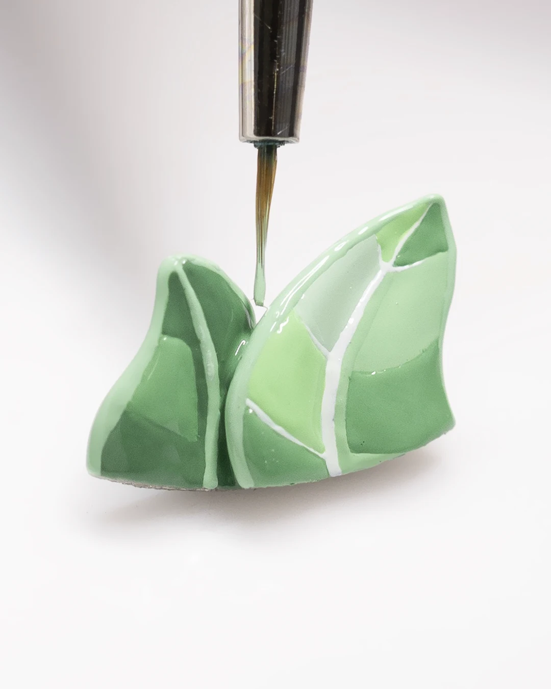 Arbeiten mit Emaille sind eine Studie über Farbe, Chemie und Intuition. Es müssen unterschiedliche Pigmente gemischt werden, von denen jedes seine eigene Brenntemperatur hat. Ein Brennvorgang dauert oft nur drei bis vier Minuten, doch die Risiken sind immens: Ein Grad zu heiß oder ein paar Sekunden zu lange, und die Farbe verändert sich oder verbrennt.