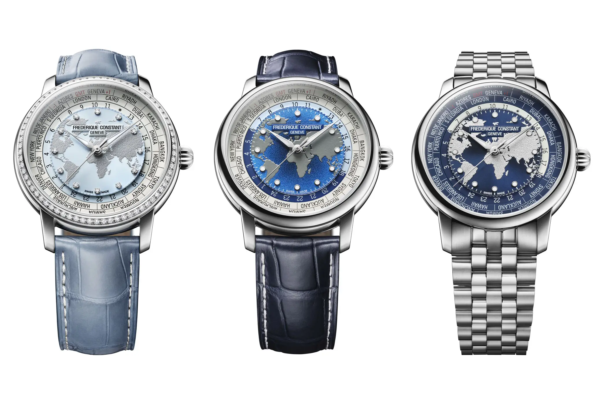 Gemeinsam ist allen drei neuen Varianten das um zwei Millimeter auf 40 Millimeter reduzierte Gehäuse sowie das neue Manufakturkaliber FC-719. Darüber hinaus verzichtet die Genfer Marke bei den neuen Ausführungen auf die bisher bei 6 Uhr platzierte Datumsanzeige. Dadurch kommt das charakteristische Weltkartenmotiv auf dem Zifferblatt vollständig zur Geltung, ohne wie bei den Vorgängermodellen teilweise vom Unterzifferblatt mit Zeigerdatum verdeckt zu werden.