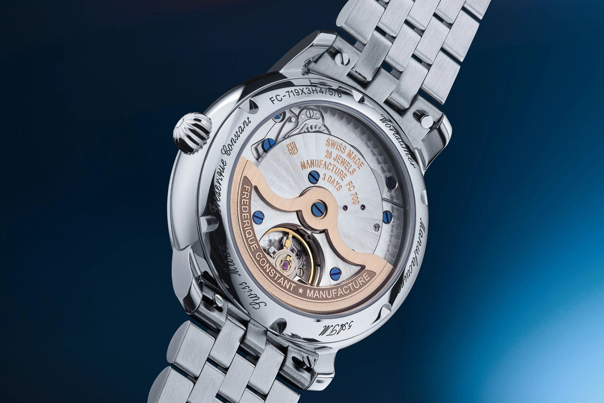 Im Vergleich zu vielen traditionsreichen Uhrenmanufakturen ist Frederique Constant eine vergleichsweise junge Vertreterin der Schweizer Uhrmacherkunst. Seit ihrem ersten Inhouse-Uhrwerk – dem 2004 vorgestellten Handaufzugskaliber FC-910 – verfolgt die Marke jedoch mit bemerkenswertem Engagement die Entwicklung eigener Werke.