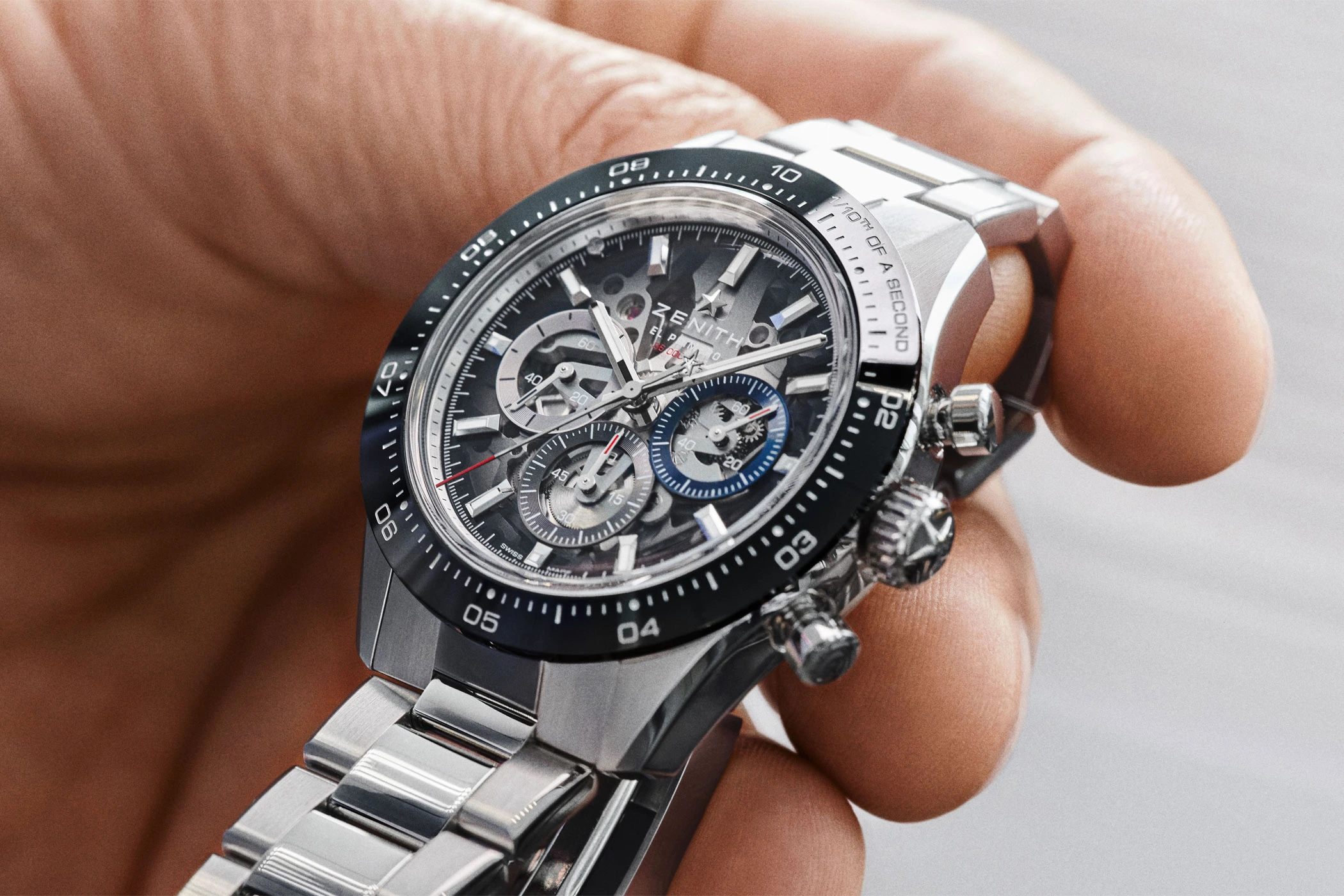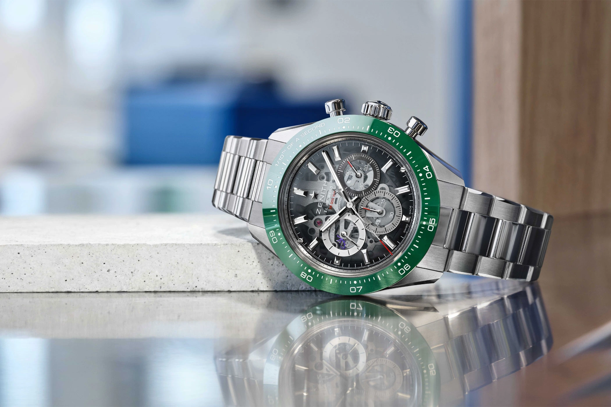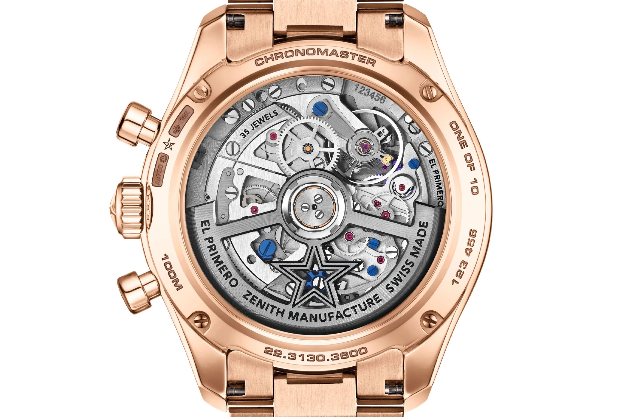 Die neuen Chronomaster-Sport Skeleton-Modelle sind mit einer skelettierten Version des Schnellschwingers El Primero 3600 ausgestattet. Die hohe Frequenz von fünf Hertz (36.000 A/h) ermöglicht die präzise Messung und Anzeige von Zehntelsekunden. Das bedeutet, dass der zentrale Chronographenzeiger eine volle Umdrehung in zehn Sekunden absolviert – bei herkömmlichen Chronographen erfolgt dies einmal pro Minute.