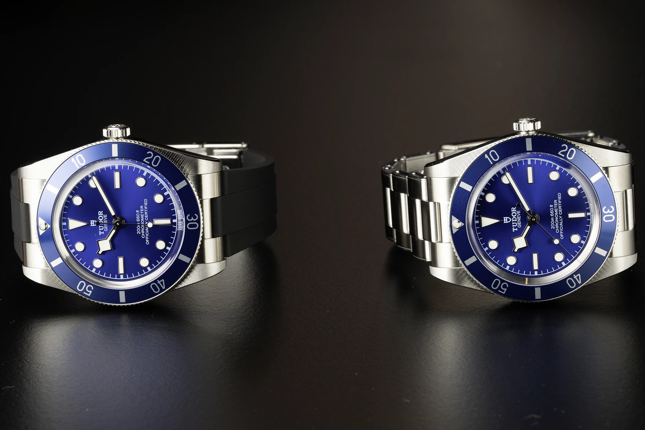 Der eigentliche Unterschied liegt allerdings im Farbton. Das neue Saphirblau verleiht der Black Bay 54 eine ganz andere Präsenz als das bisherige schwarze Modell. Die Uhr wirkt heller, frischer und etwas zugänglicher, ohne an Ernsthaftigkeit zu verlieren. Das leicht gewölbte Zifferblatt mit Sonnenschliff bringt zusätzlich Bewegung ins Spiel, während die hellblauen Akzente den Auftritt angenehm auflockern.