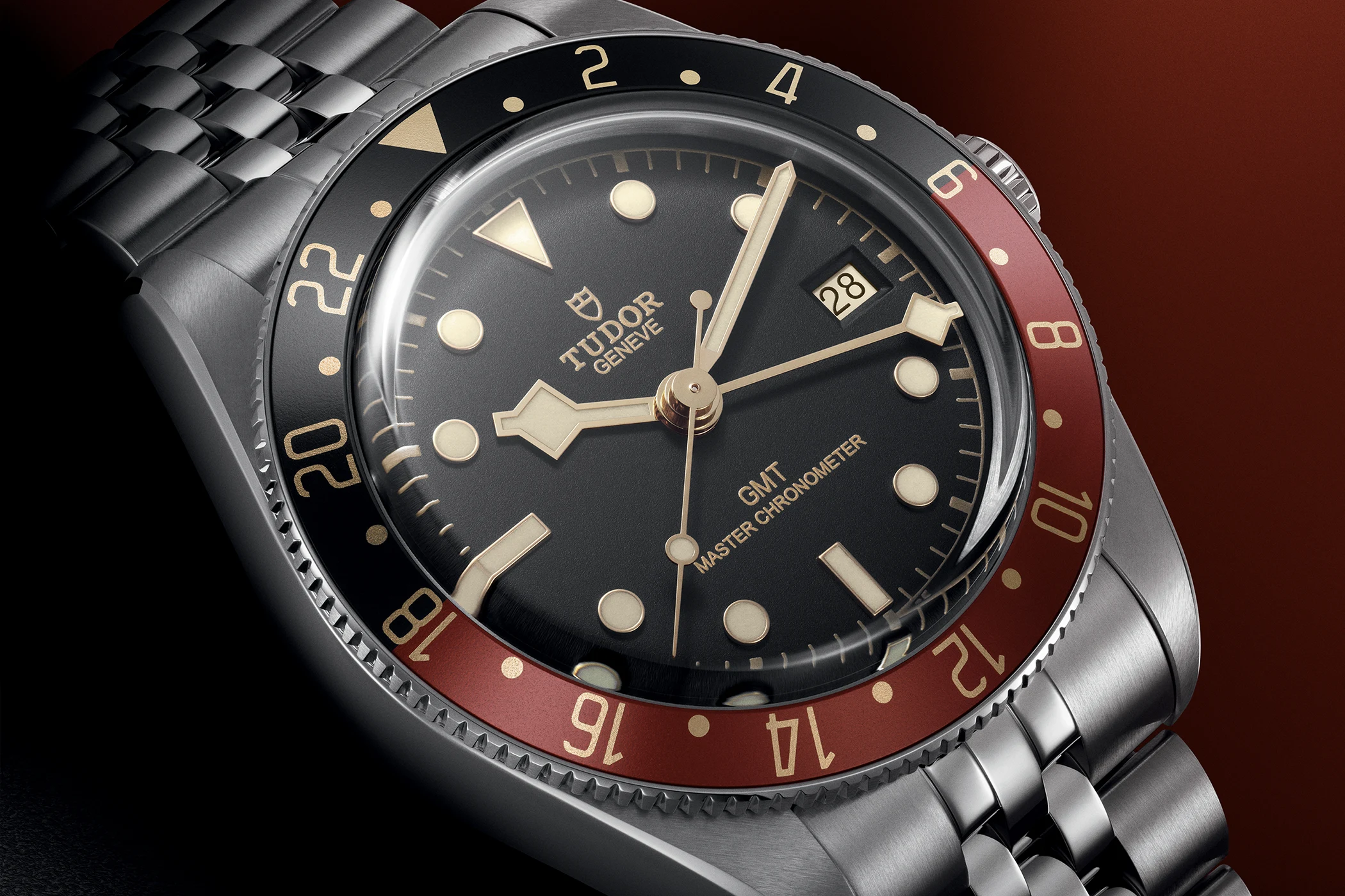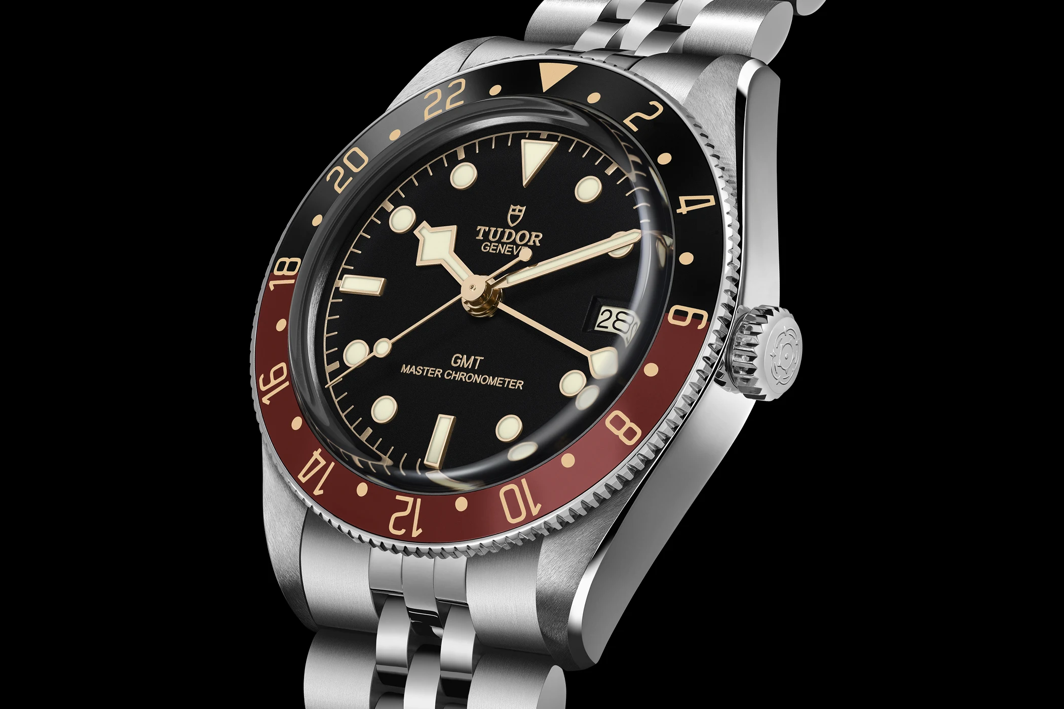 Wichtig ist dabei, dass die Black Bay 58 GMT nicht bloß wie eine verkleinerte Version der bekannten Black Bay GMT aussieht. Das Gehäuse bleibt kompakt, das Profil fällt flacher aus als beim 41-Millimeter-Pendant, und die bündig integrierte Krone mit Tudor-Rose trägt viel dazu bei, dass das Optische der Uhr geschlossen und sauber wirkt. Der Lollipop-Sekundenzeiger setzt einen schönen historischen Akzent, ohne sich in den Vordergrund zu drängen.