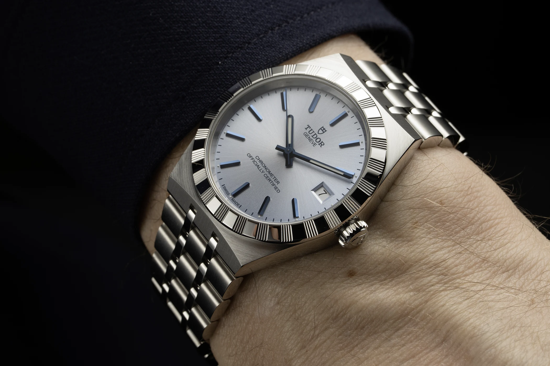 Bei den Werken setzt Tudor je nach Größe auf das MT5201, MT5412 oder MT5633. Die größeren Kaliber bieten rund 70 Stunden Gangreserve, das kleinere 50 Stunden. Wasserdicht bleibt die Royal bis 100 Meter. Vor allem aber gewinnt sie an Glaubwürdigkeit. Die Royal wirkt damit nicht länger wie eine Modell mit unausgeschöpftem potential innerhalb der Kollektion, sondern wie eine ernstzunehmende Alternative mit deutlich geschärfter Präsenz.