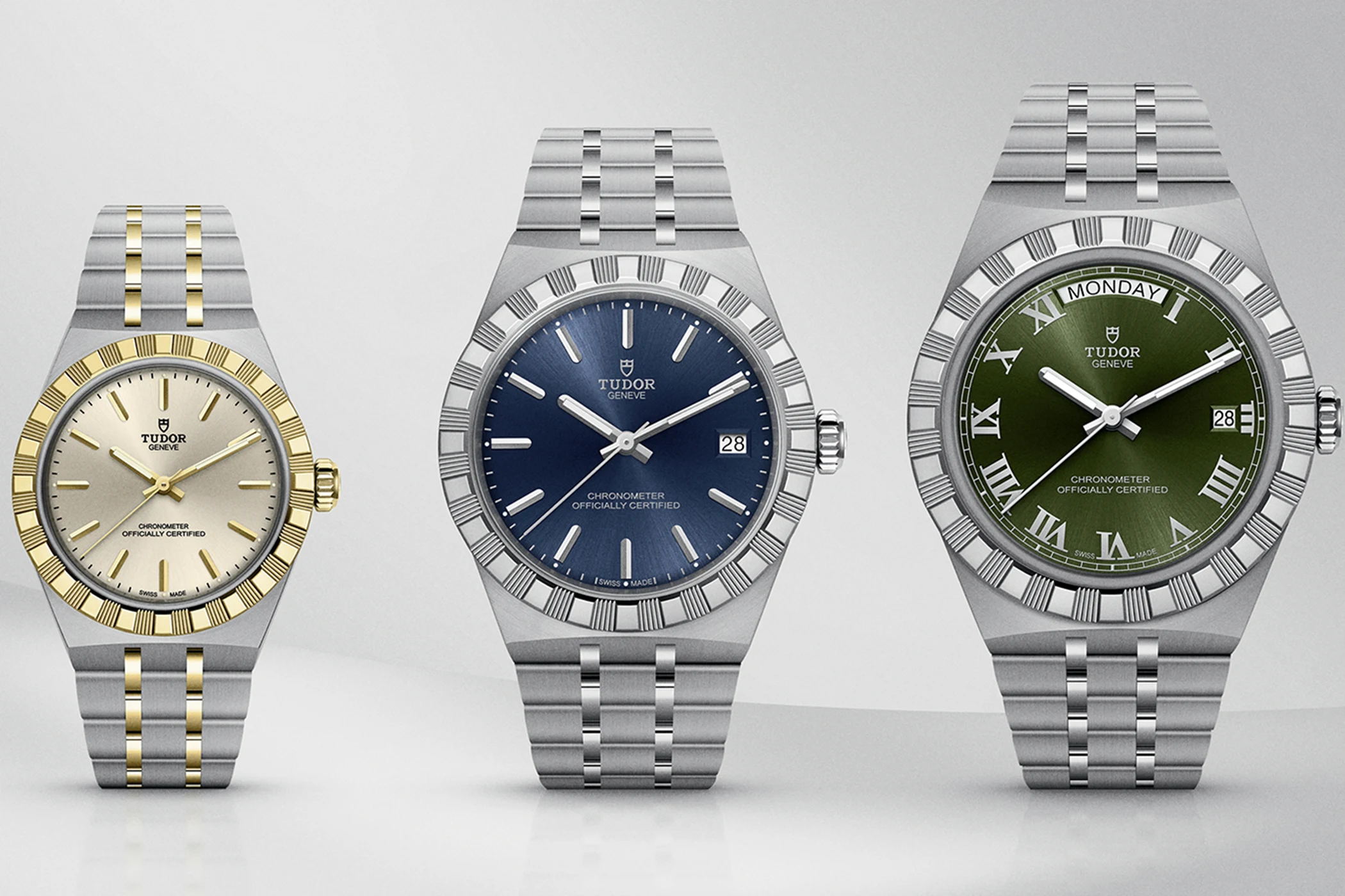 Besonders stark ist die neue Breite des Angebots. Tudor bringt die Royal nicht nur in Edelstahl, sondern auch in Bicolor mit Gelbgold. Dazu kommt eine große Auswahl an Zifferblattfarben – von klassischen Tönen wie Schwarz, Blau und Silber bis zu Grün, Hellblau, Elfenbein, Lachs, Bordeaux, Braun, Champagner und Perlmutt. Die 40-Millimeter-Version erhält zusätzlich eine Wochentagsanzeige auf 12 Uhr.
